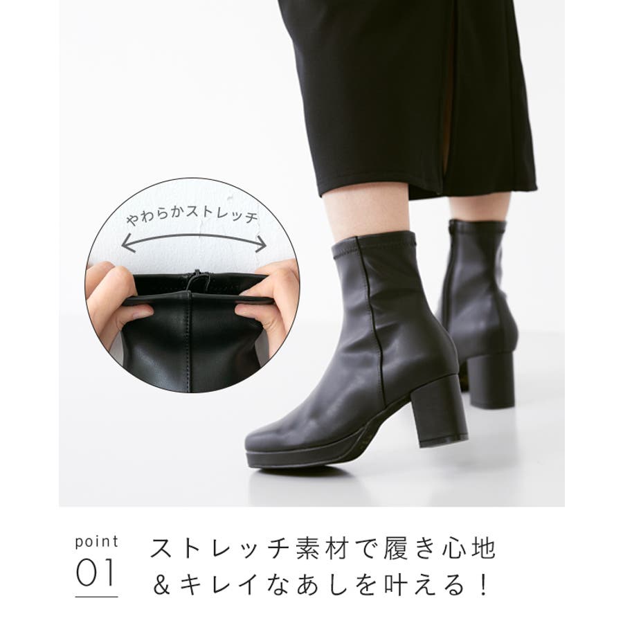 生地は柔らかいストレッチ素材なので、窮屈感なく足首にフィットしてすっきりとしたシルエットに仕上げてくれます!さん (20代 / 女性 / 身長 )購入アイテム:カラー 1020ブラックPUサイズ M(23.0~23.5cm)サイズ感:ぴったり - ヒールだけど投稿日:2023.11.20