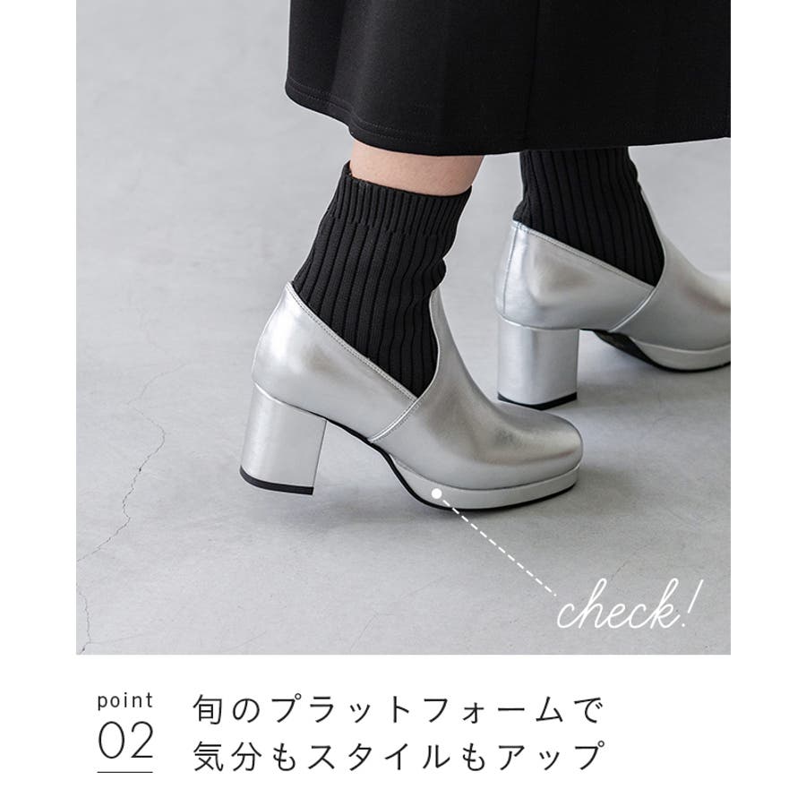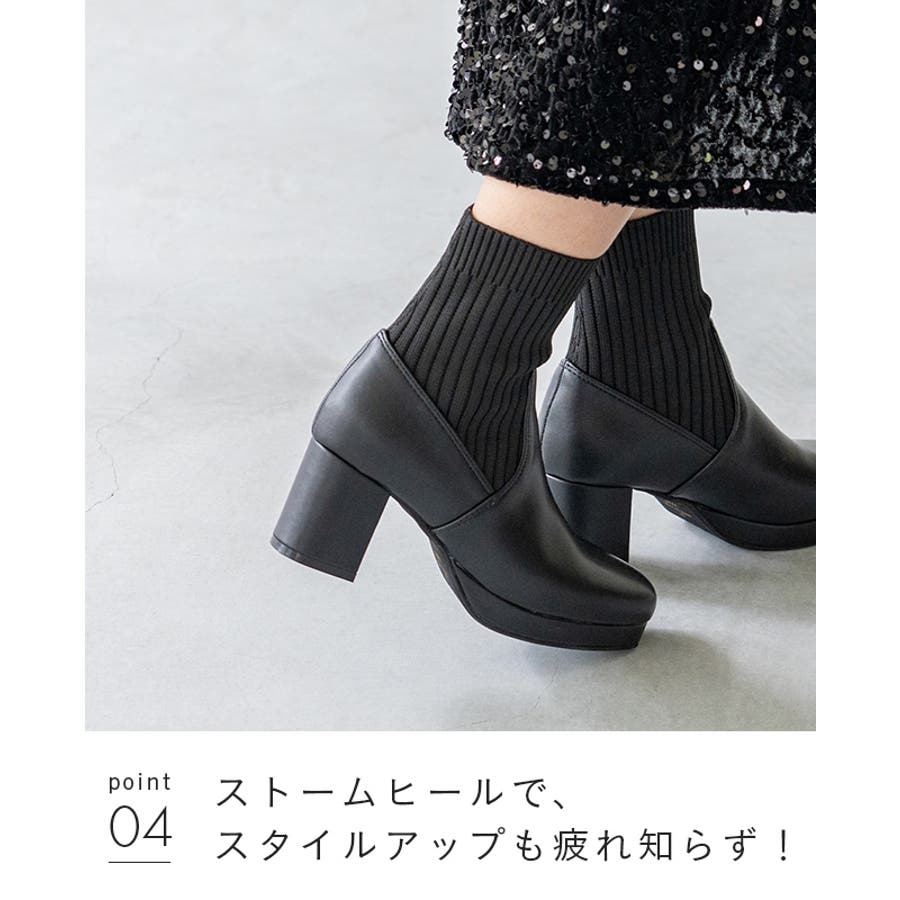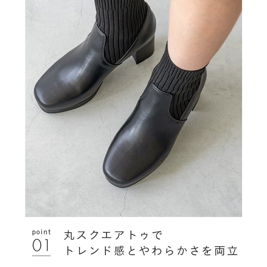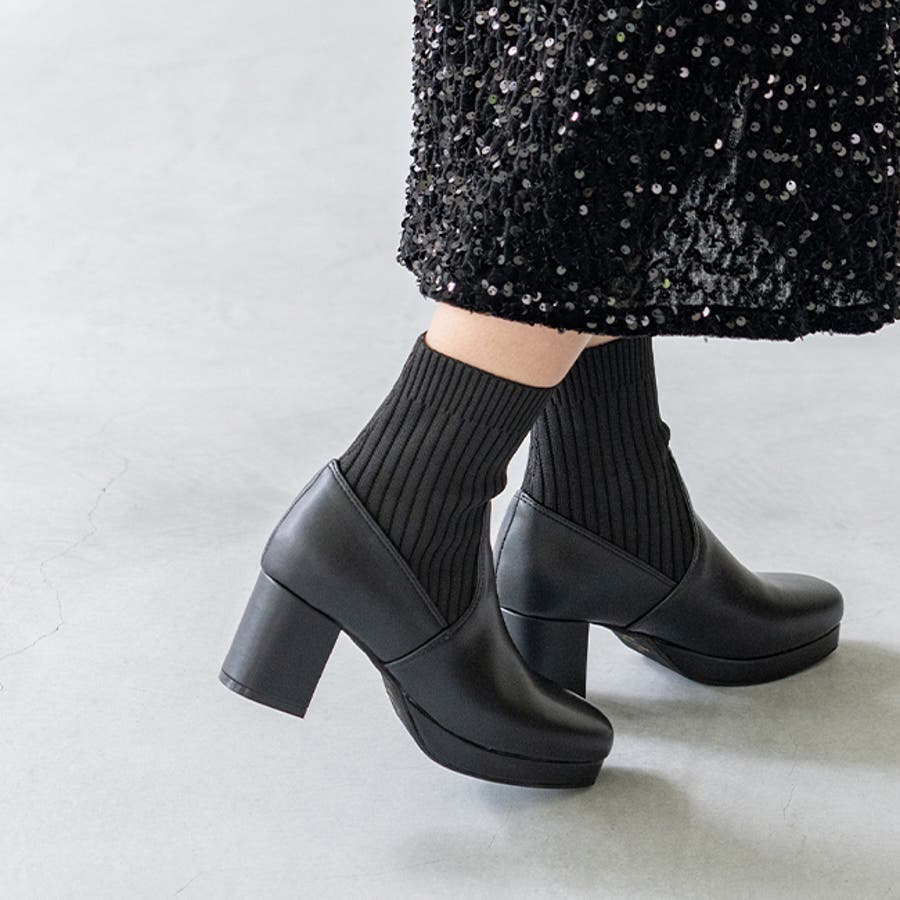 足当たりが良く切り返しがかわいいリブニット、程よい高さで疲れにくいストームヒール、普段のコーデをアップデートしてくれる1足。
