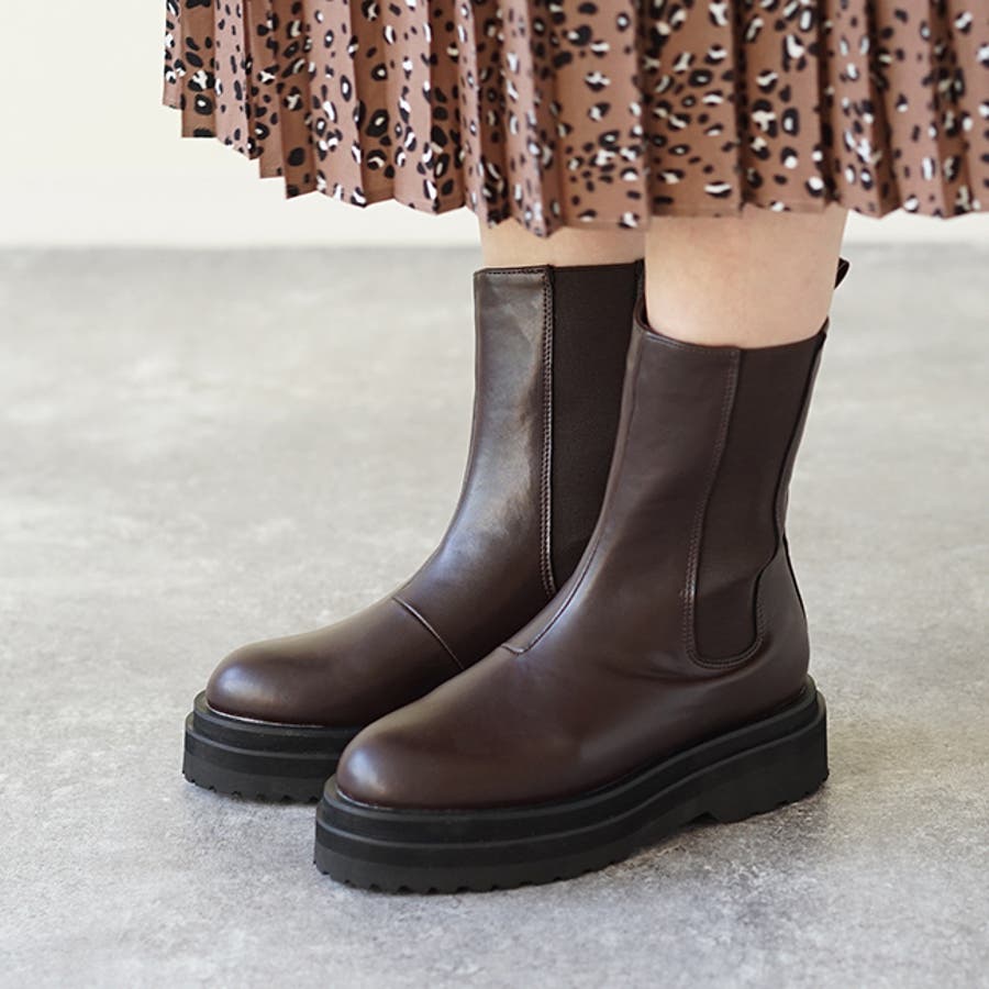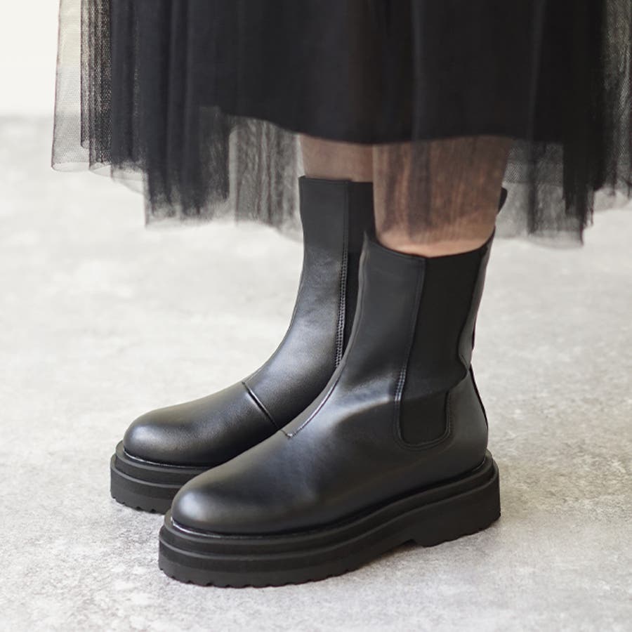 『足元重ためがスタイルアップを叶える! トラックソールサイドゴアミドルブーツ』