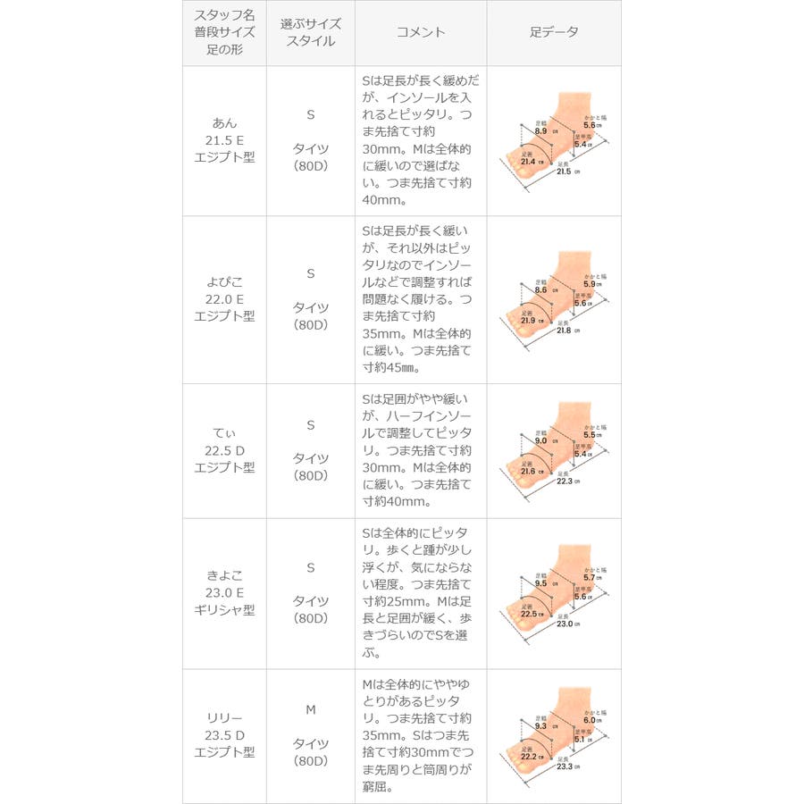 ※足の形には個人差があります。スタッフ試着感想は参考程度にお考え下さい。
