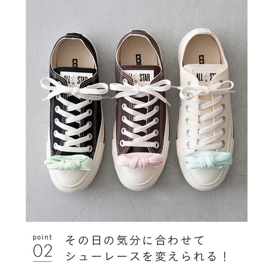 各カラーそれぞれ、定番の白と配色が可愛いポイントになるカラーの靴紐2種類から選べる!