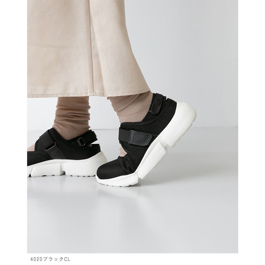 トレンド感のある、ボリュームソールに甲やかかとが肌みせデザインで、春夏に軽やかな印象で着用できるアイテムです。
