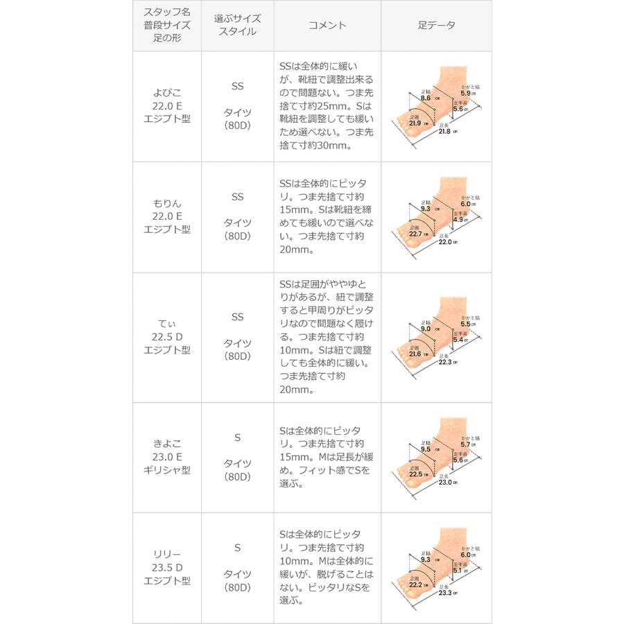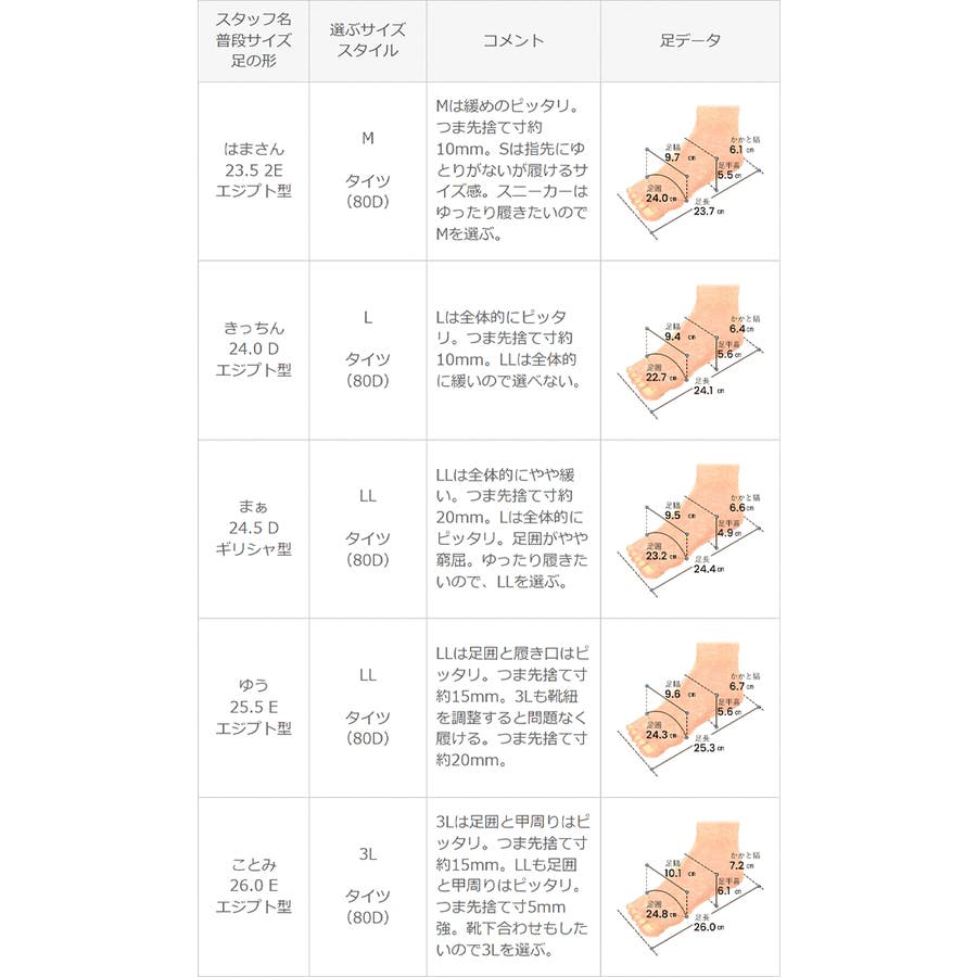 買ってよかったです。さん (30代 / 女性 )購入アイテム:カラー 6007グレージュサイズ M(24.0cm相当)足のサイズ:24.0cmサイズ感:ぴったり - ちょっと細い