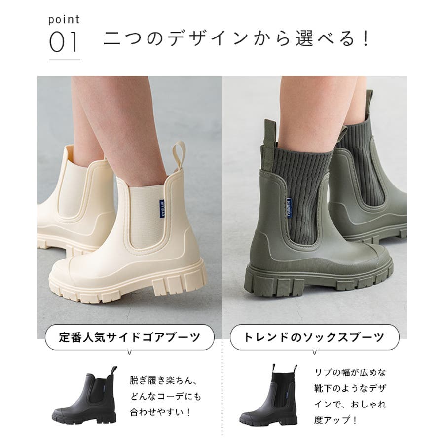デザインはトレンドのソックスブーツと、定番人気のサイドゴアブーツの二つから選べる!