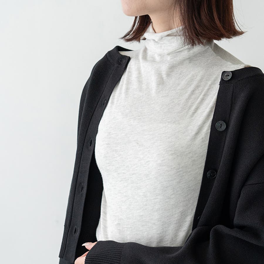 伸縮性のある綿97%生地を使用。着心地はゆったり、首元も窮屈感がありません。