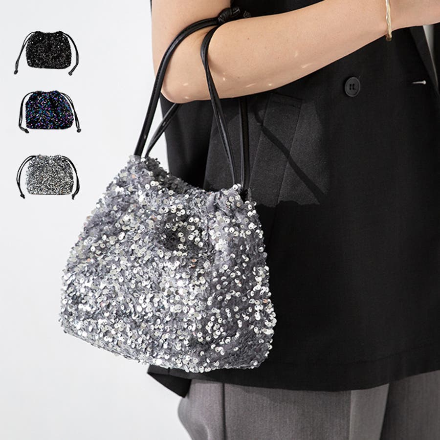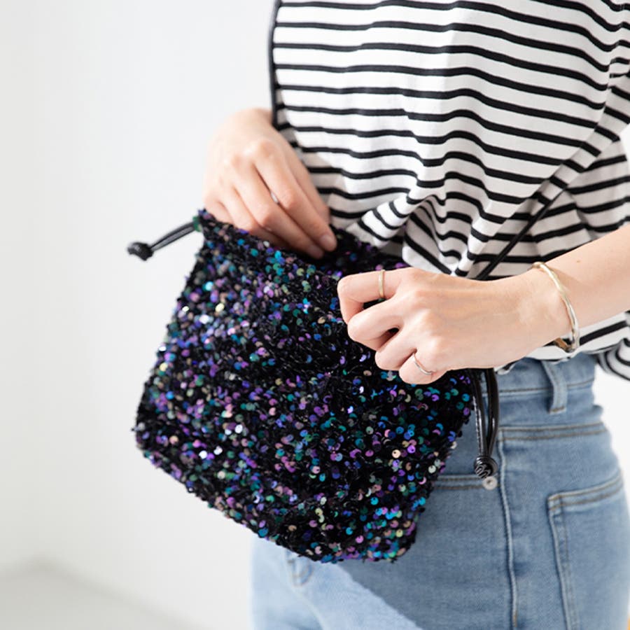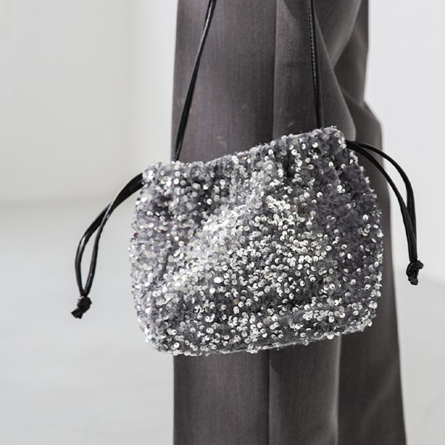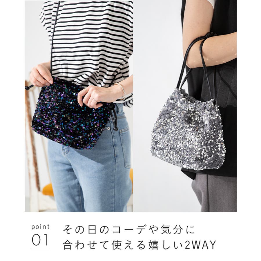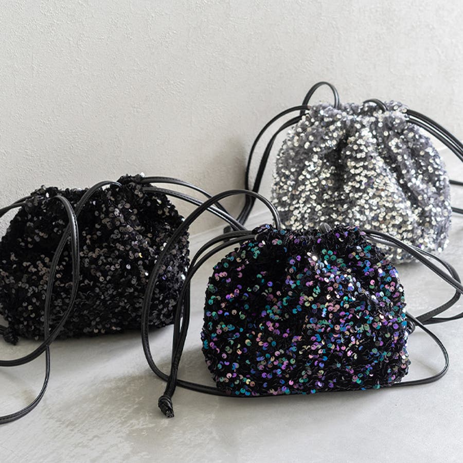トレンド感満載 2WAYスパンコール巾着バッグ