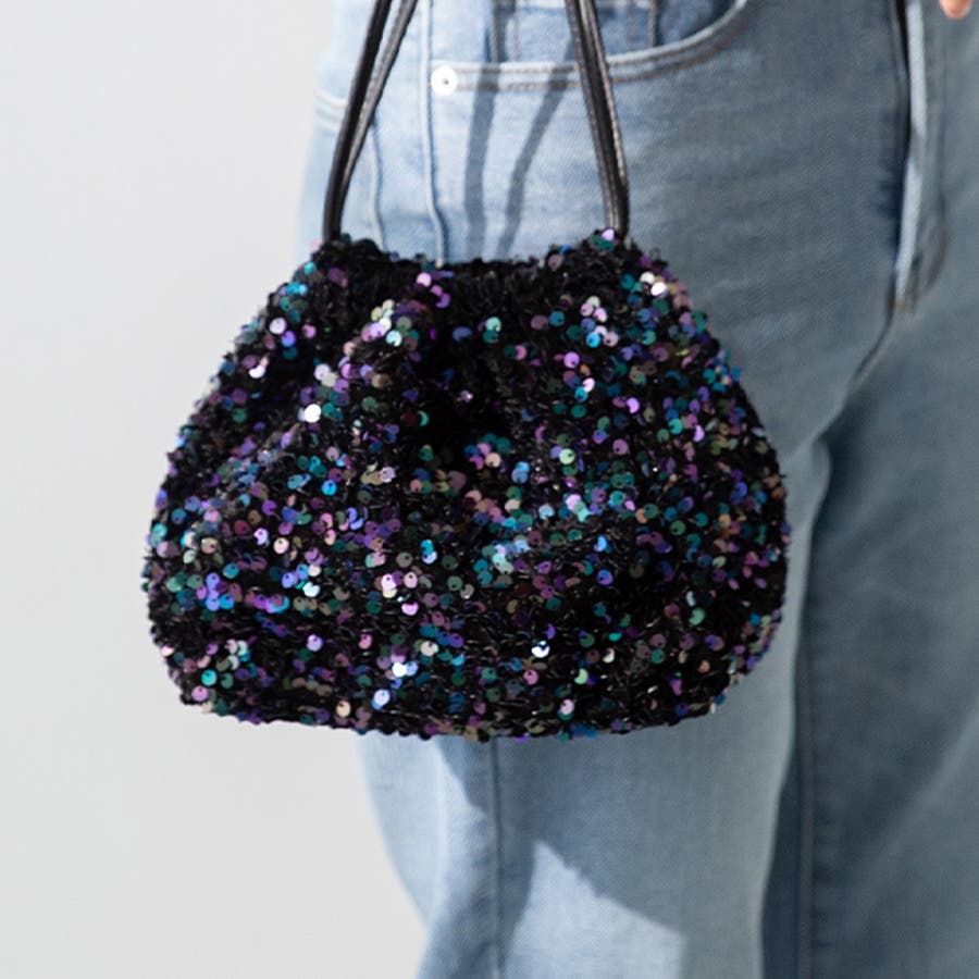 今トレンドのきらきらなスパンコールがたっぷりついた旬バッグはインパクト◎