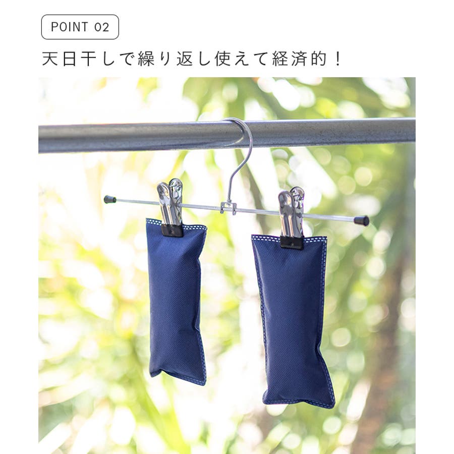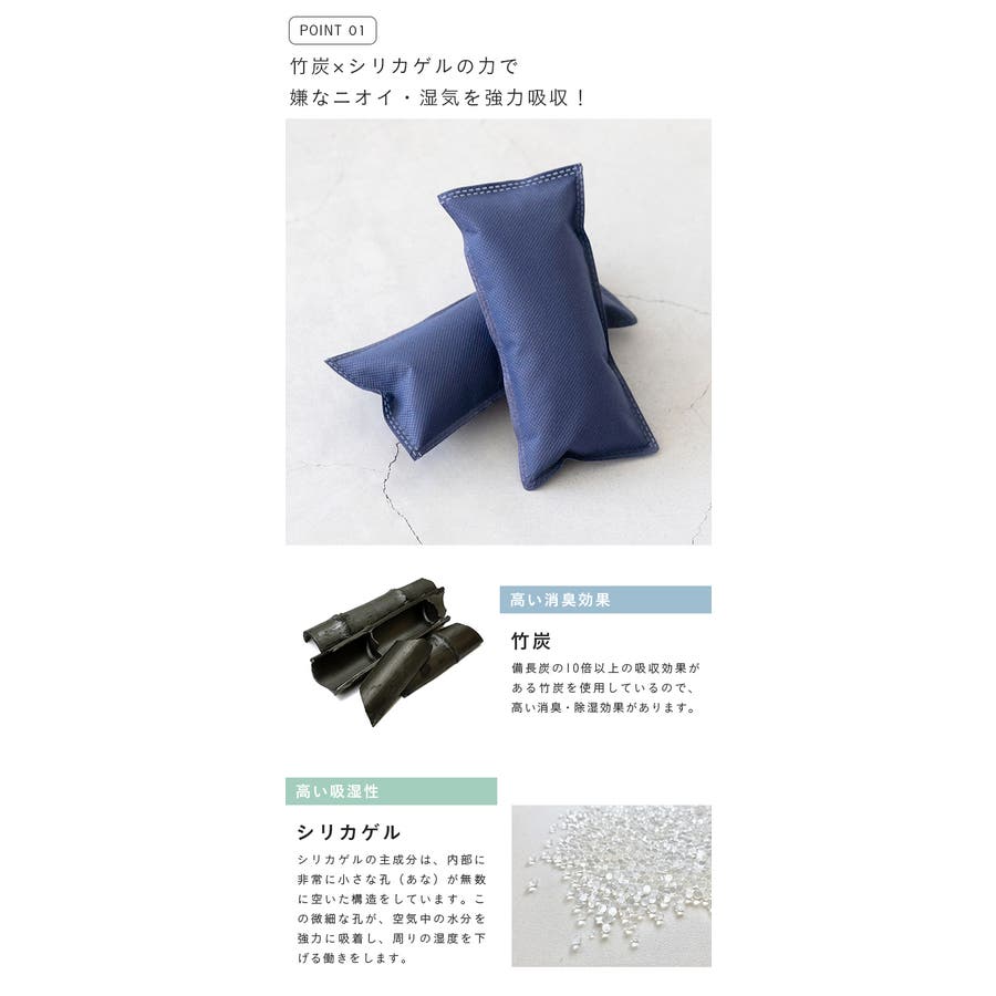 消臭・脱臭効果のある竹炭と湿気を吸収してくれるシリカゲルのW使いで嫌なニオイや湿気をしっかりと吸収してくれます。