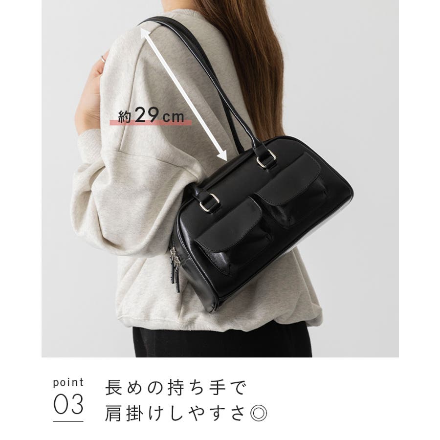 持ち手のショルダー部分は約29cmと長めの仕様なので、ニットなどの袖が広めのトップスなどでも肩掛けしやすい!