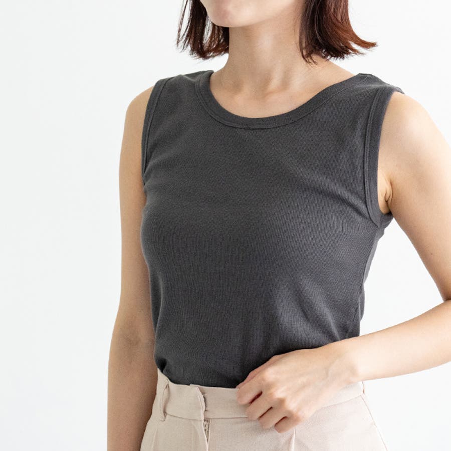 シンプルデザインでしっかりとした生地感の使いやすいタンクトップ。