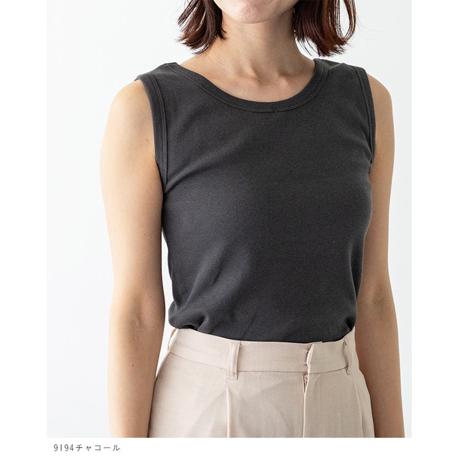 【9194チャコール】テレコタンクトップ レディース ノースリーブ