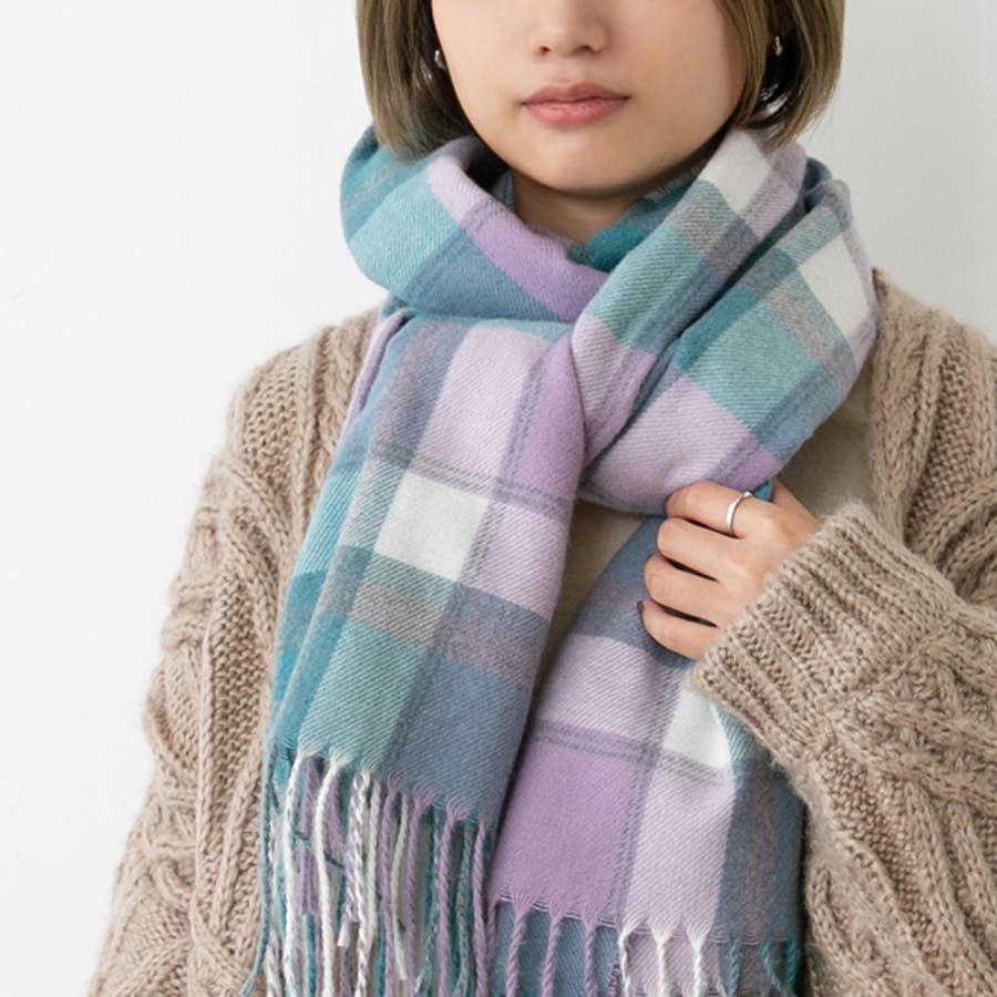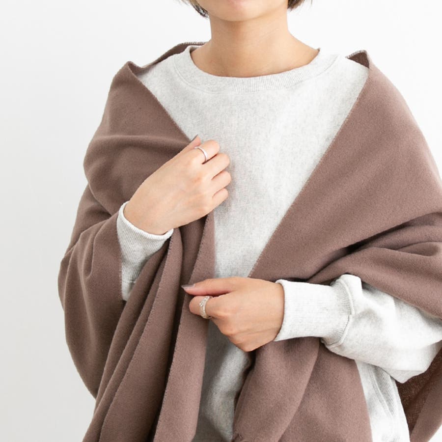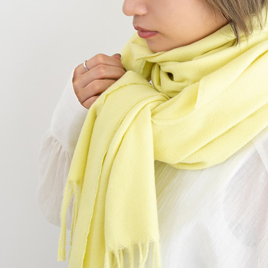 生地にはリサイクル糸を半分使用。通常の糸を100%使用したものよりやわらかく肌当たりが優しいのが特徴。 薄いけれど驚くほどあったかく、軽さもあるので「ストールを巻くと首や肩が凝る…」という悩みも軽減!