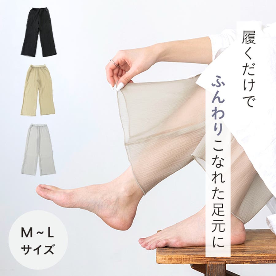 | 選ぶサイズ M~L | 丈はくるぶしが隠れる長さでちょうどいい。生地に伸縮性はないがお尻が大きめでも履けた。ウエストも窮屈感なし。しゃがむと少し太もも辺りがつっぱる感じはある。 |
