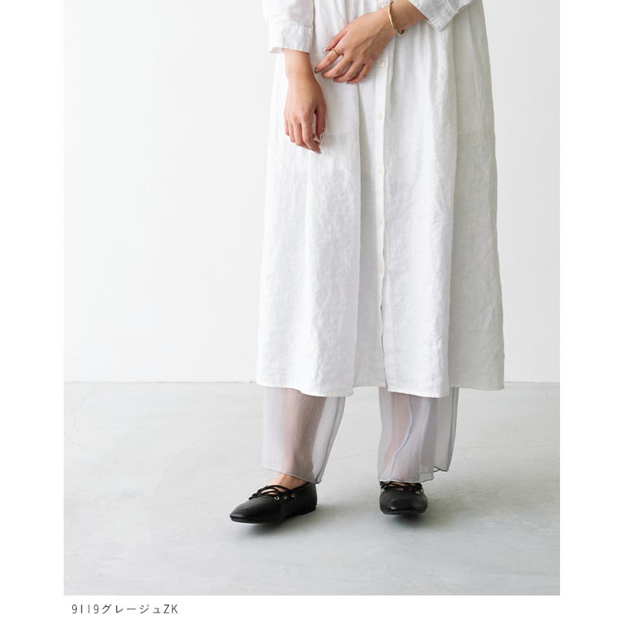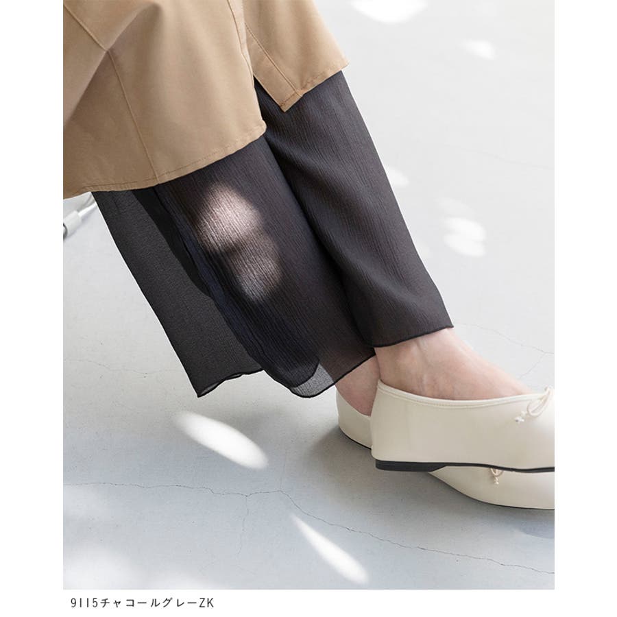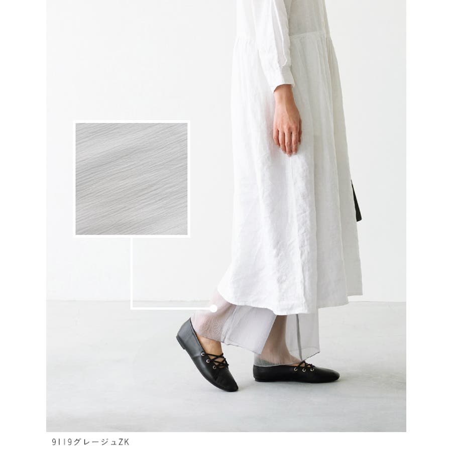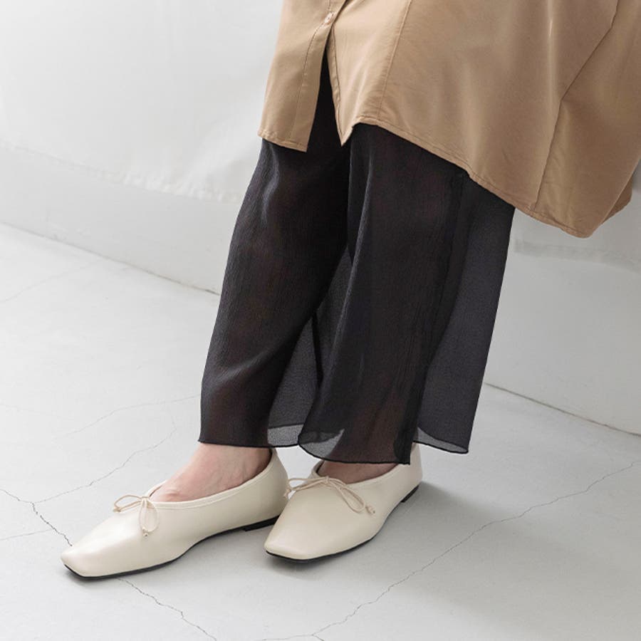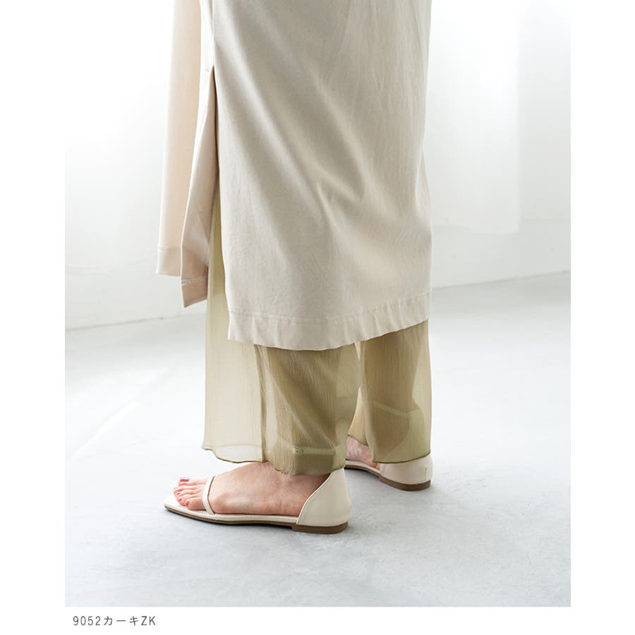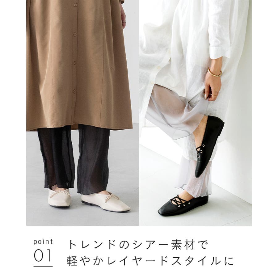 程よいシワ感とほんのり光沢のあるシフォン素材が、ヌーディすぎないちょうどいい素足感を演出。