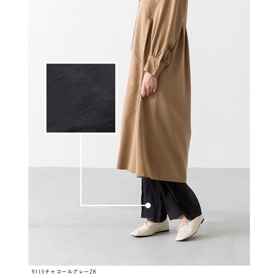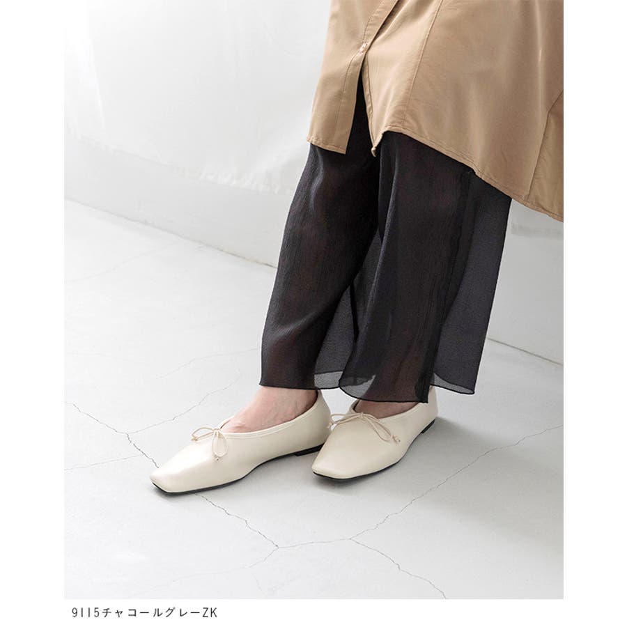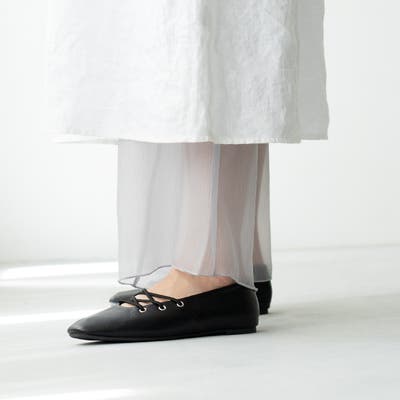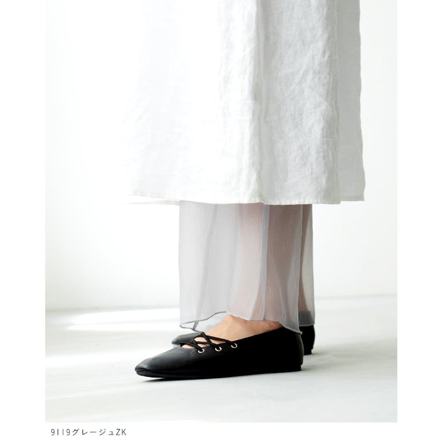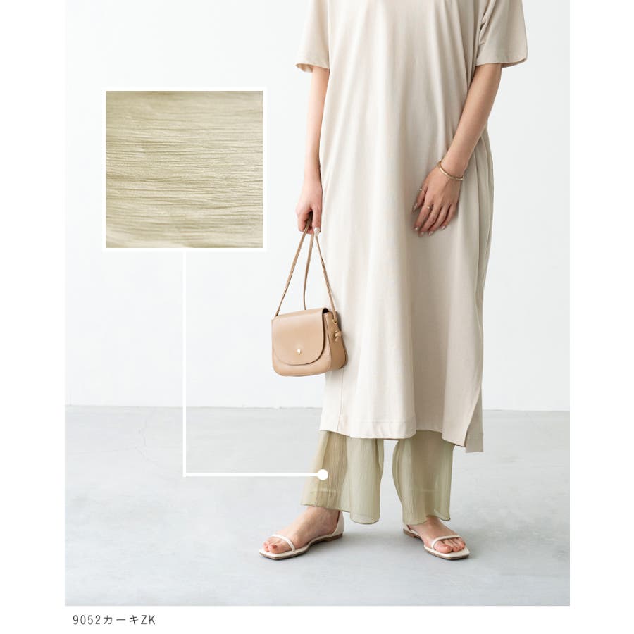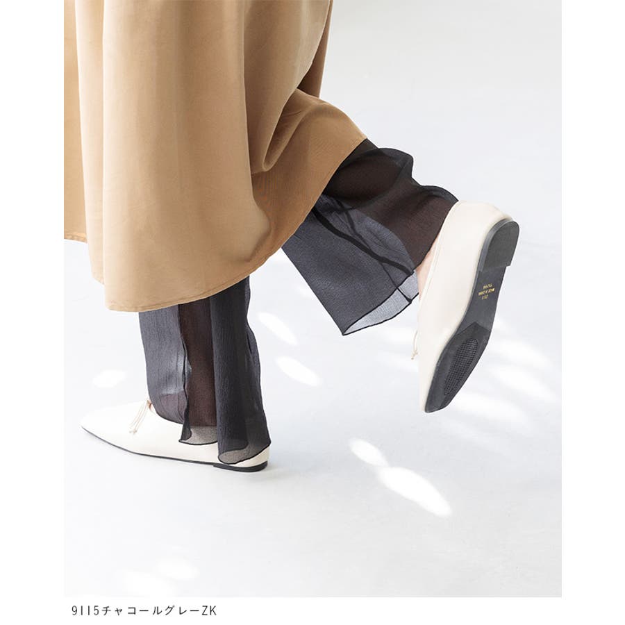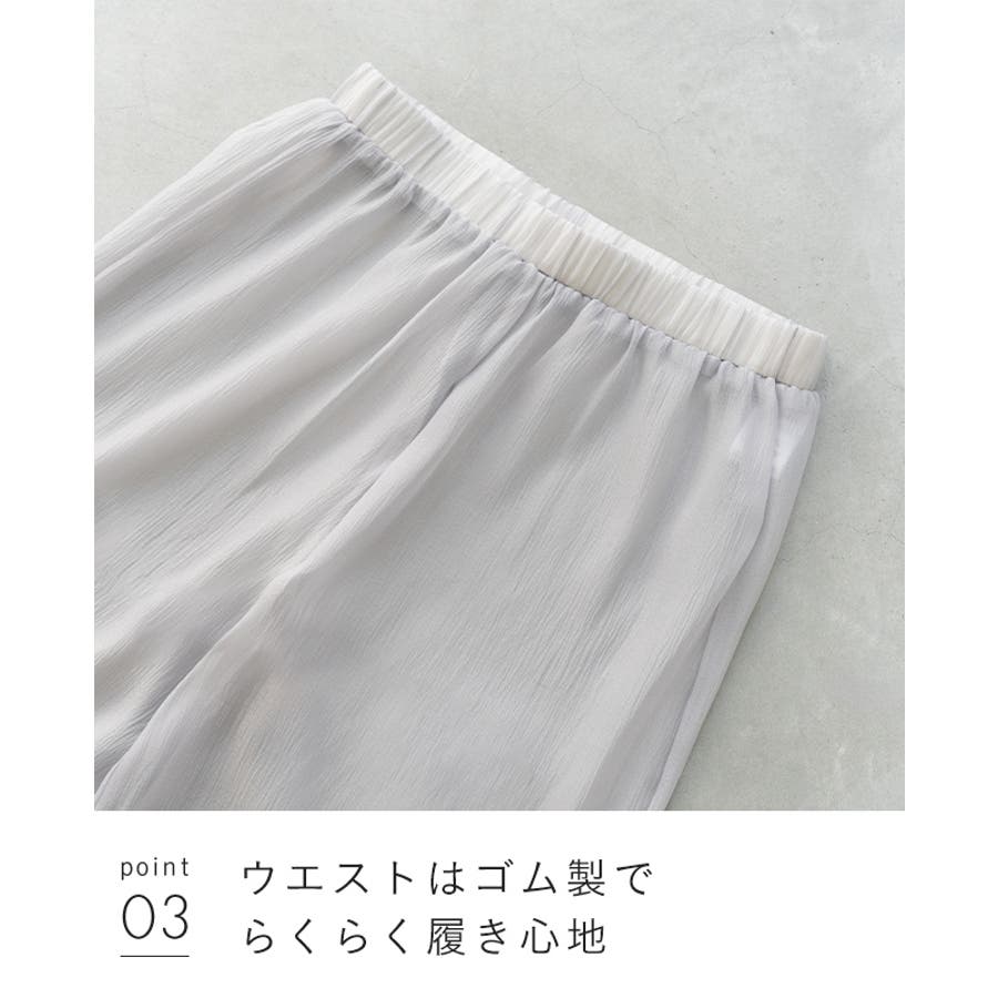 程よいシワ感とほんのり光沢のあるシフォン素材が、ヌーディすぎないちょうどいい素足感を演出。