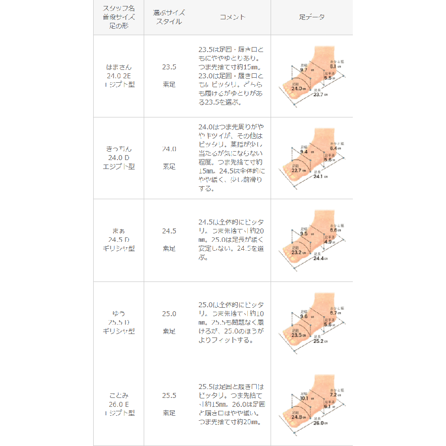 ※足の形には個人差があります。スタッフ試着感想は参考程度にお考え下さい。