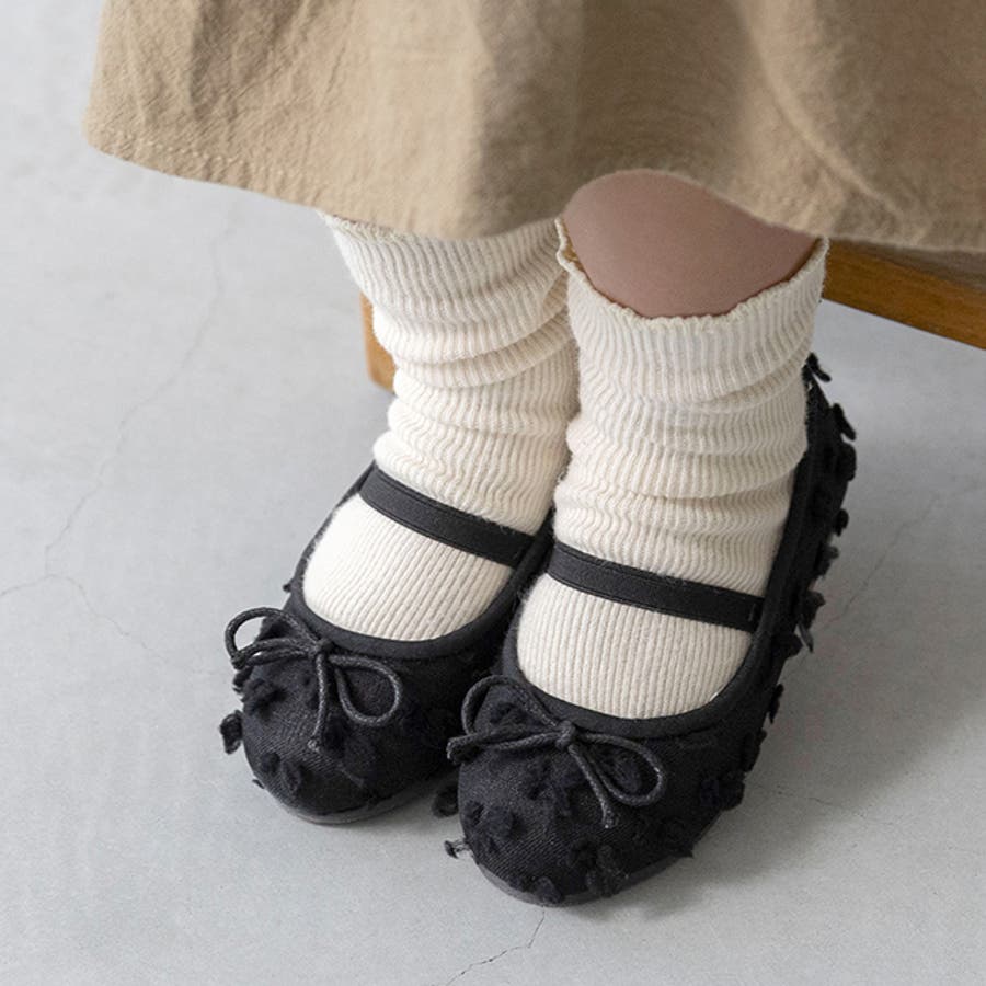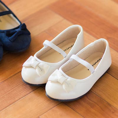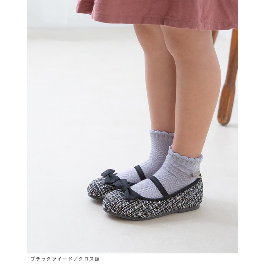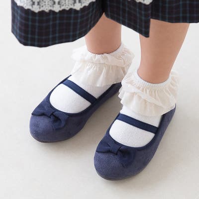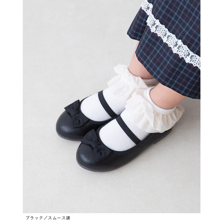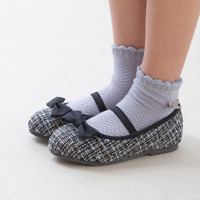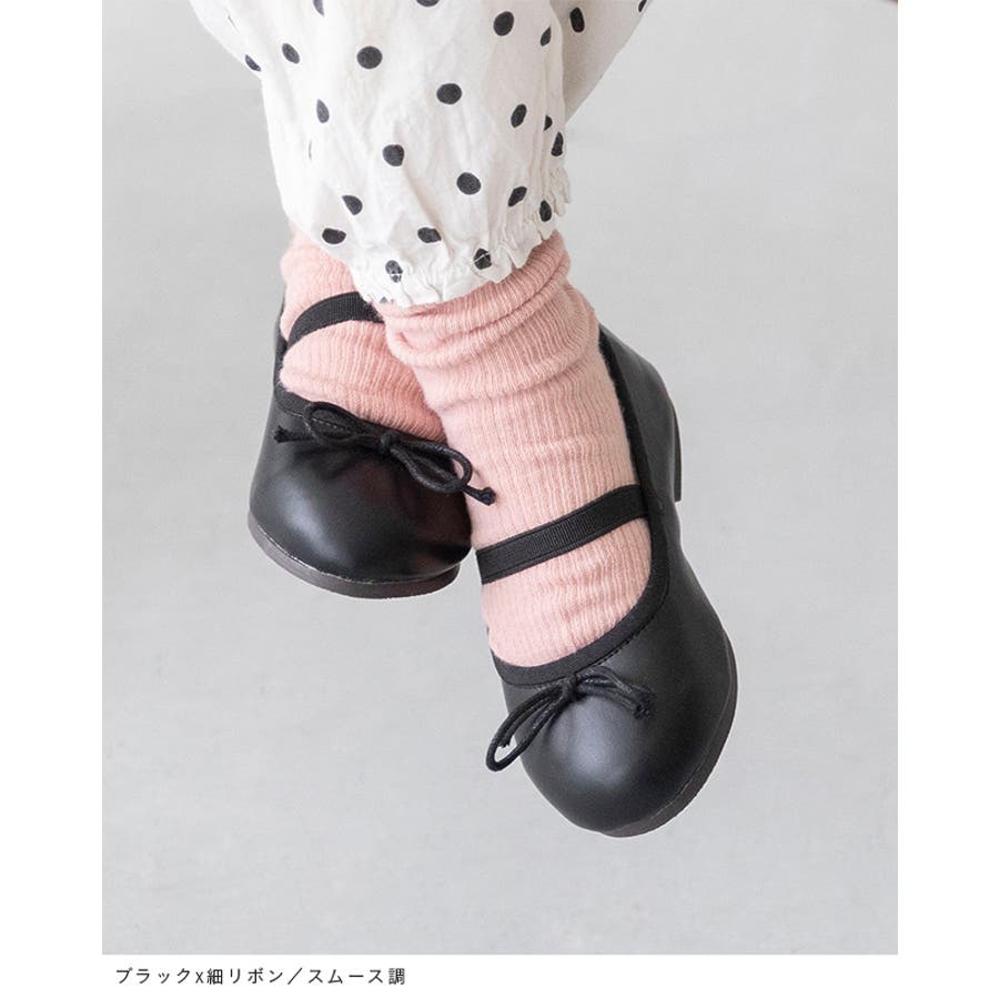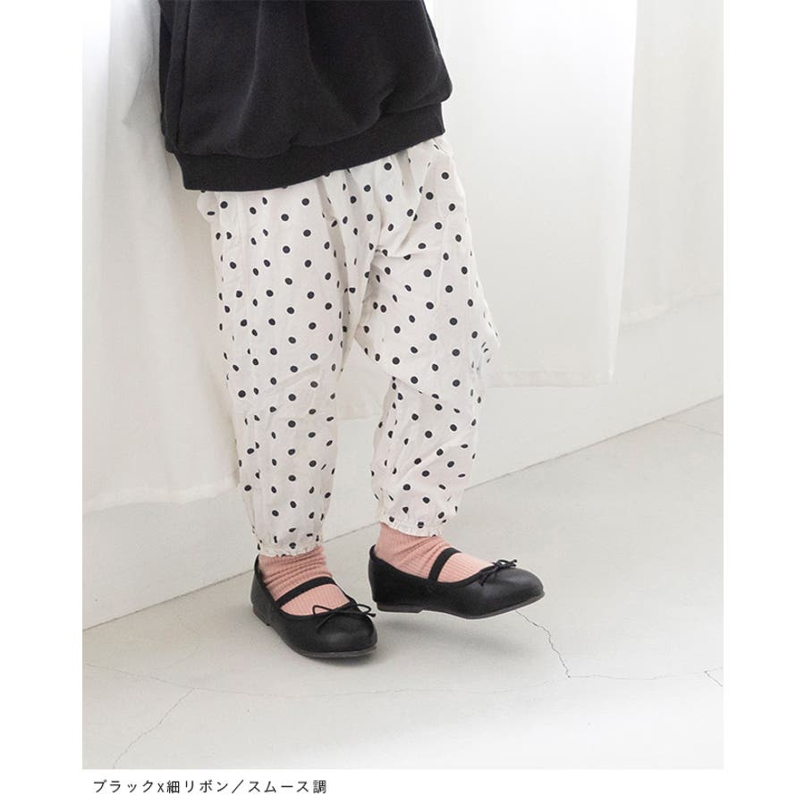 ころんとまるいトゥに、リボンが女の子らしい足元を演出してくれます。