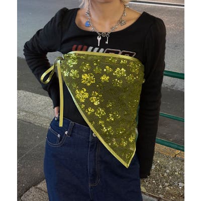 キラキラのスパンコールが目を惹く三角スカーフ。