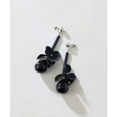 ・モノトーンカラーの花びらと、大きなドロップが特徴的な大振りピアス