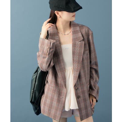 ・落ち着いた色味の大人っぽさを感じられるチェックジャケット。トレンド感のある大きめのサイズ感が可愛らしさもプラス。