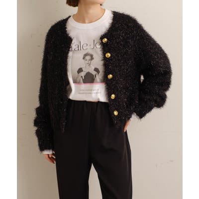 ・ラメの煌めきがスタイリング主役になるニットカーディガン。