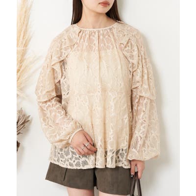 レース / フリルブラウス / インナー付き / 肩あき