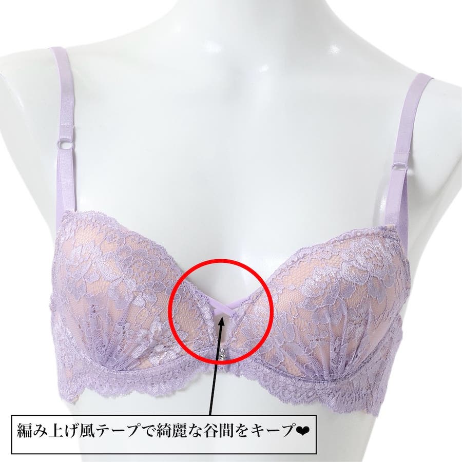 カップ中心の編み上げ風のコードでセクシーさアップ!
