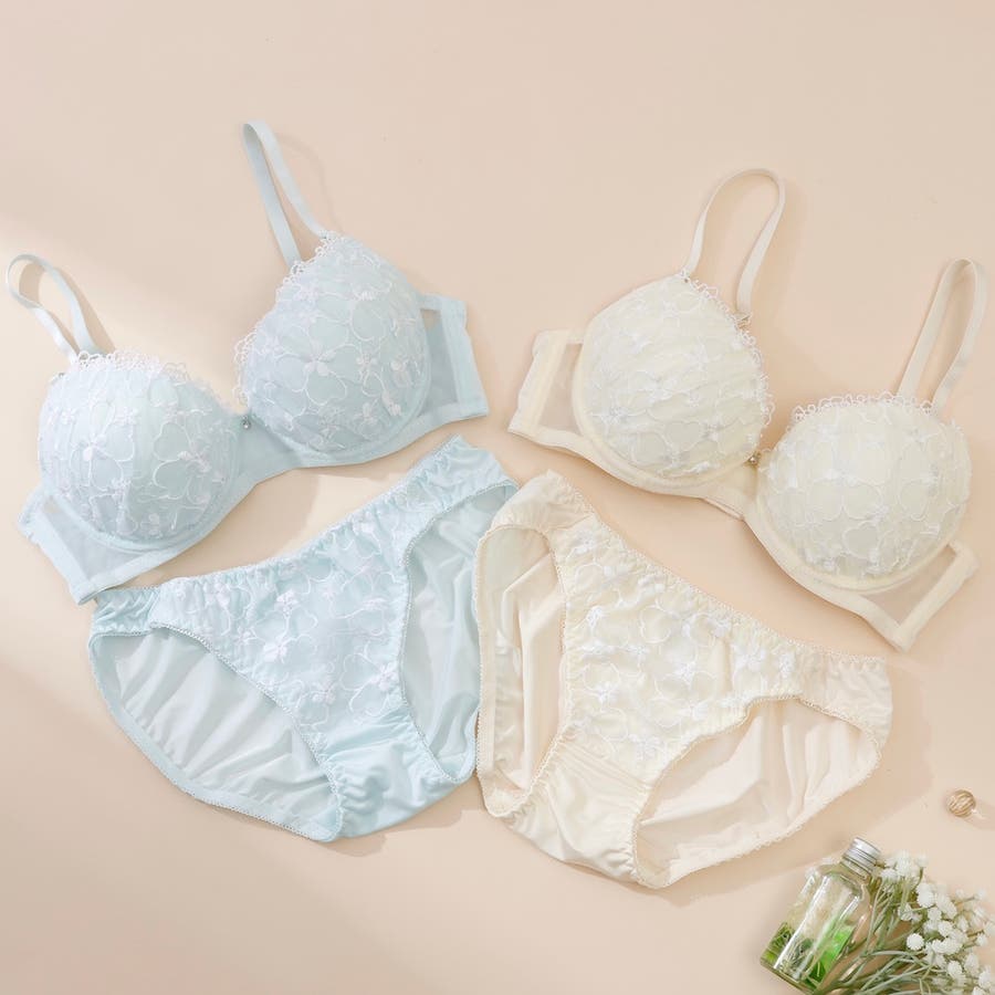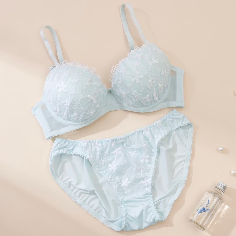 フラワーオーガンジー3/4モールドカップブラ&ショーツ