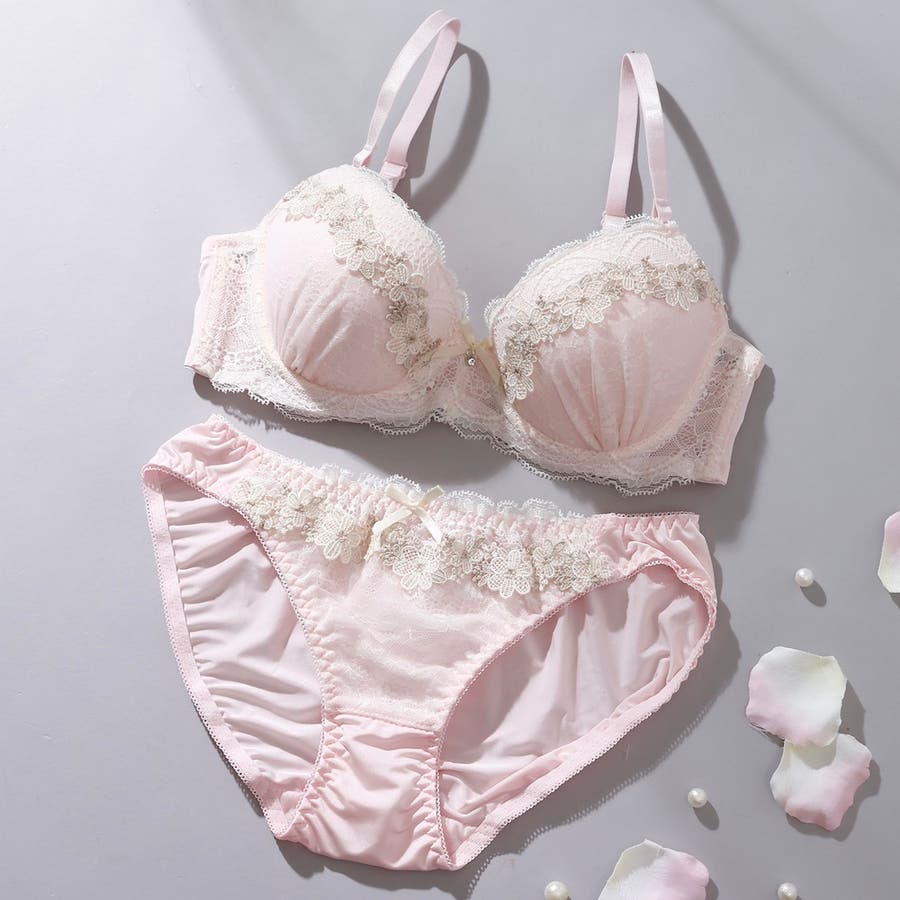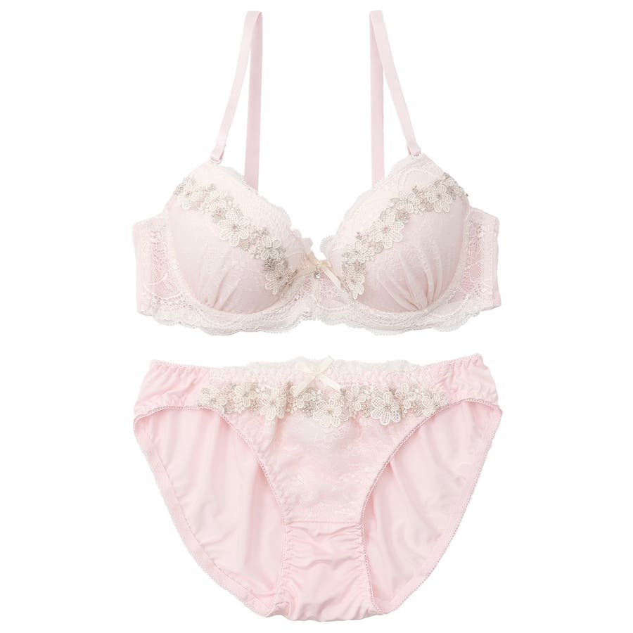 ナチュラルな色味でふんわり柔らかな雰囲気に仕上げたブラとショーツの下着セットです。