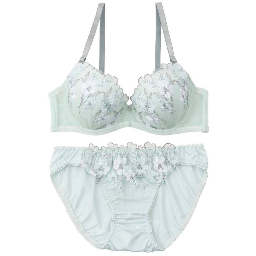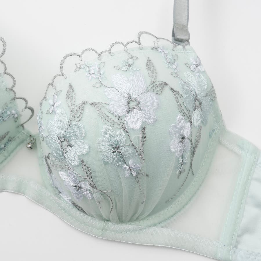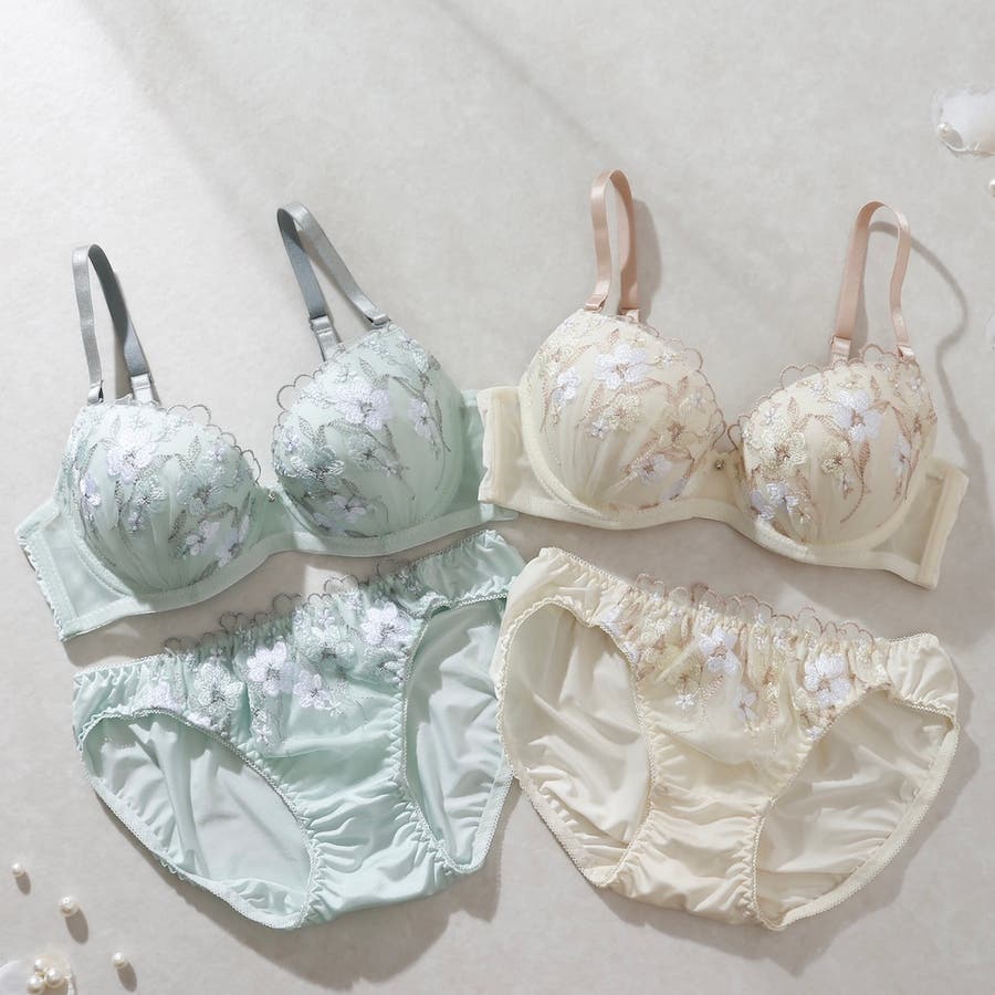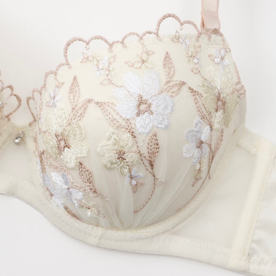 フェミニンフラワー刺繍3/4モールドカップブラ&ショーツ