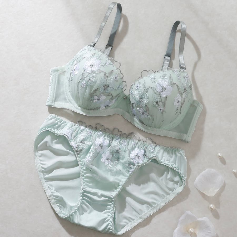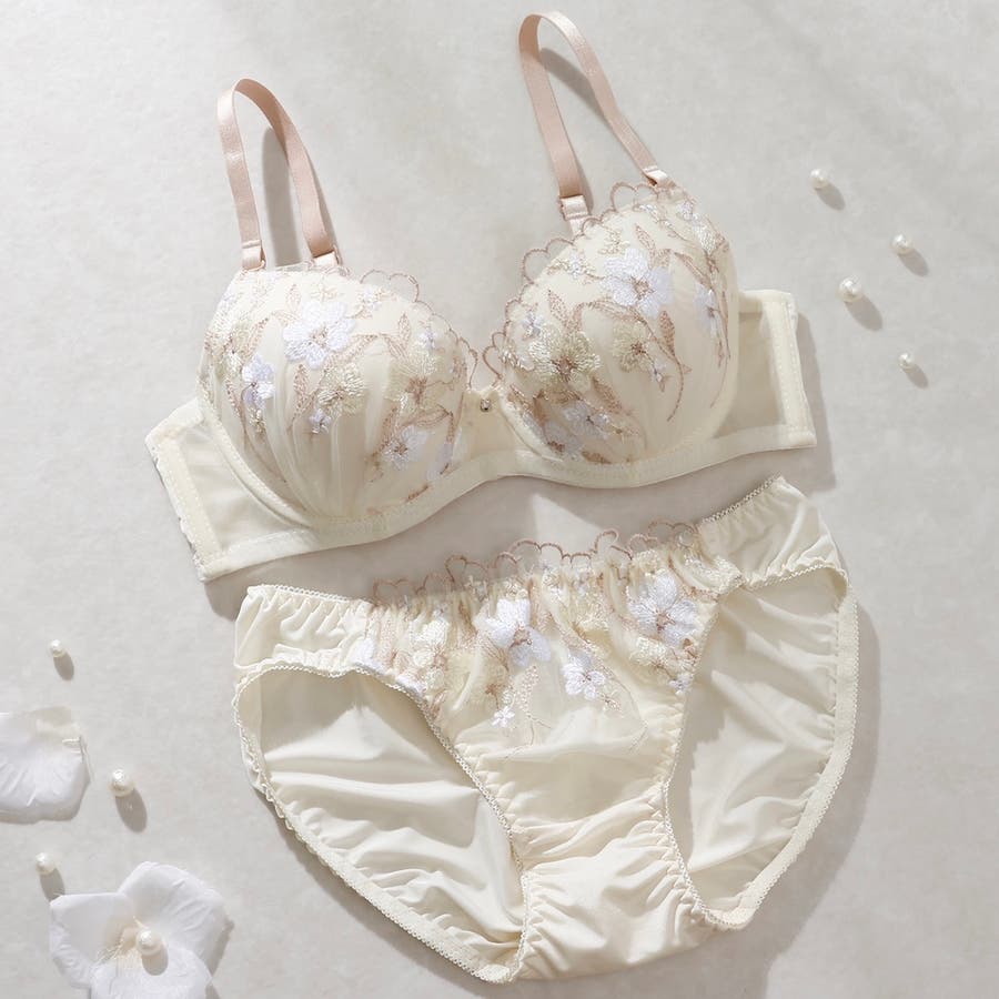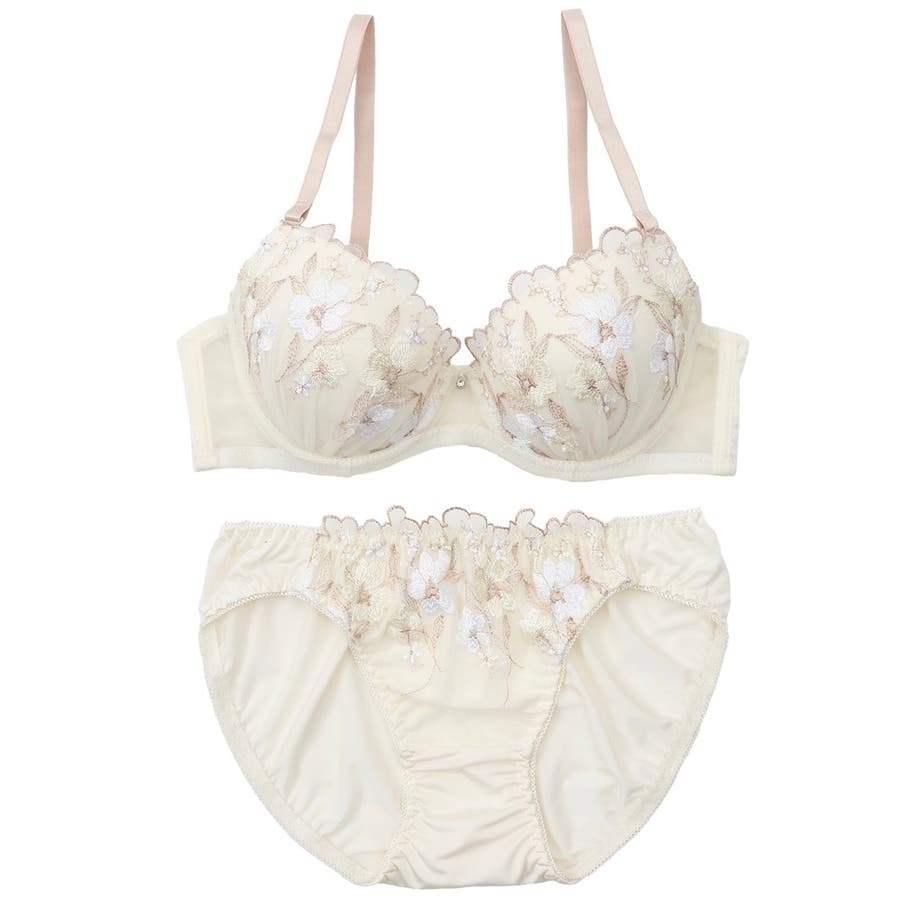 【EFカップ】フェミニンフラワー刺繍3/4モールドカップブラ&ショーツ