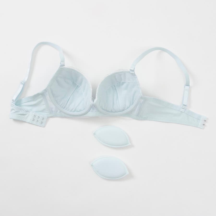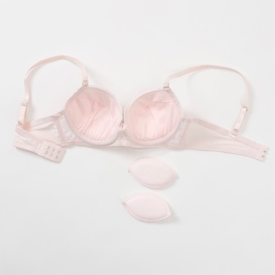 アンダーにあしらったチュールレースもとってもフェミニンなブラとショーツの下着セットです。