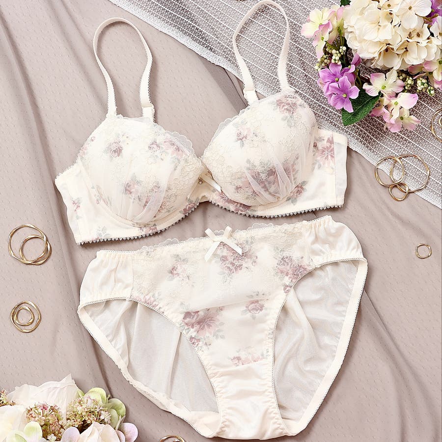 アンティークローズプリント 3/4カップブラ&ショーツ