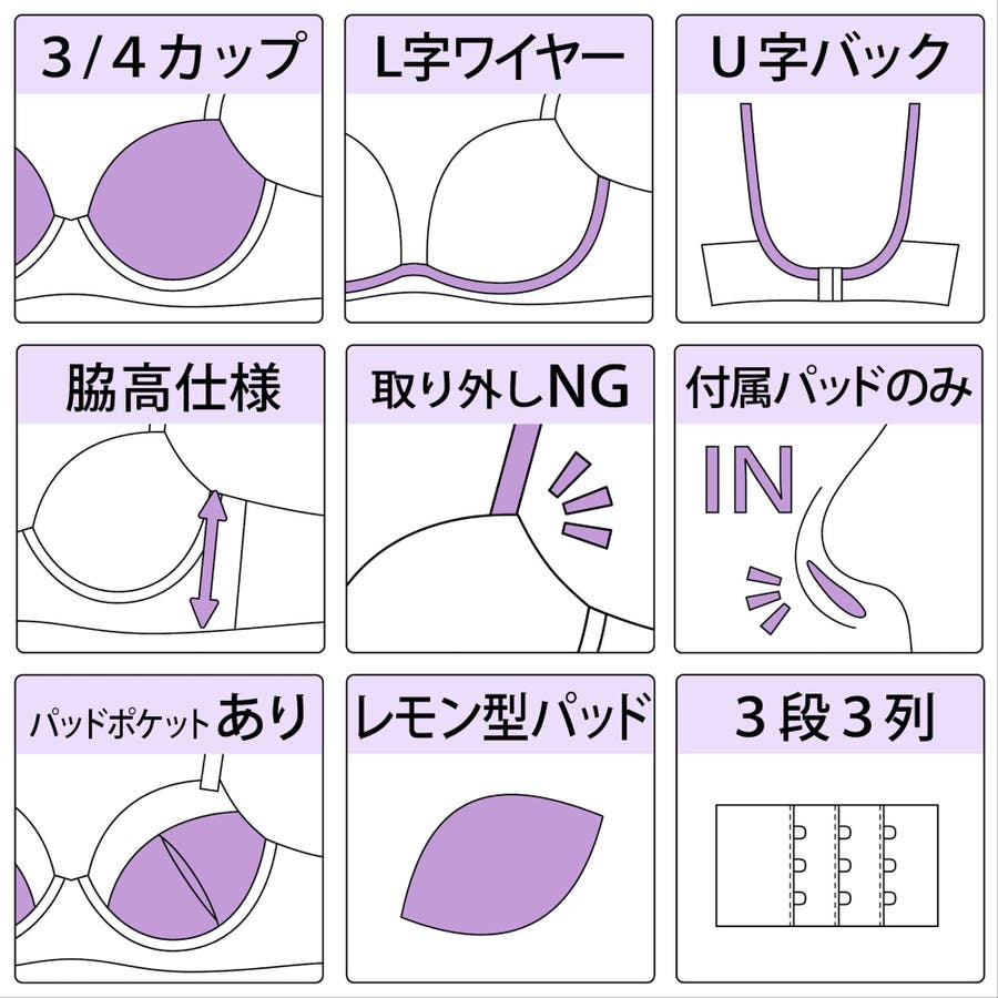 投稿日:2023.03.10脇高でホックも3つなのでズレずにフィットしてくれるので、色違いも購入したいと思いました!色もかわいいので気に入りました!