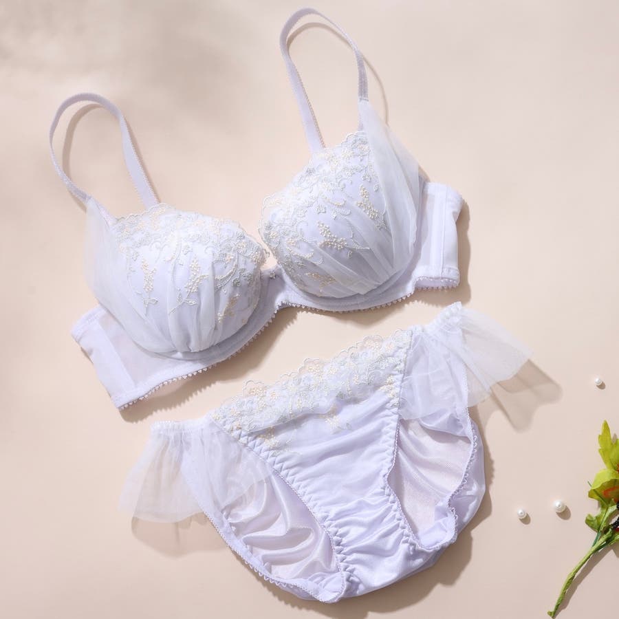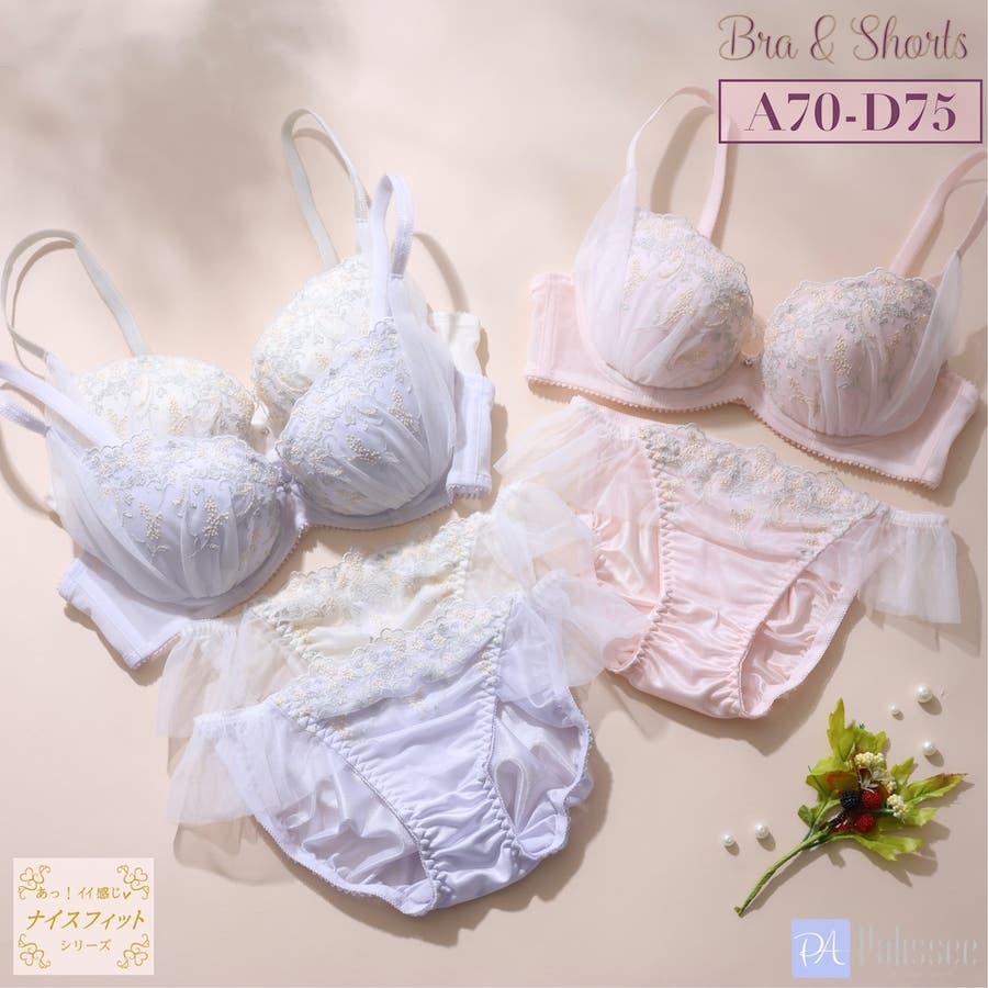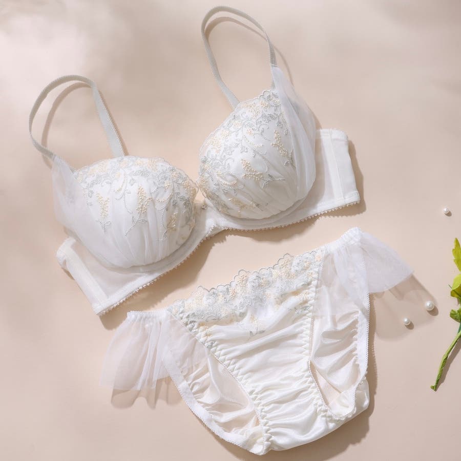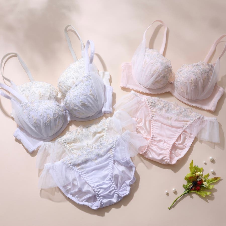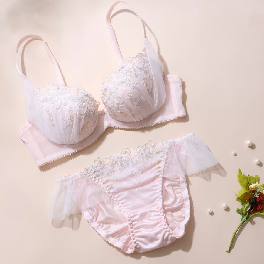 ガーリーに仕上げたブラとショーツの下着セットです。