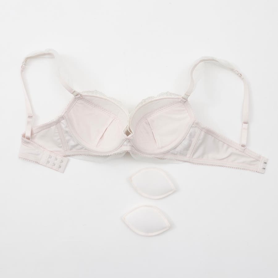 ふんわりとしたチュールをストラップとアンダーにあしらいドレスをまとっているような雰囲気。