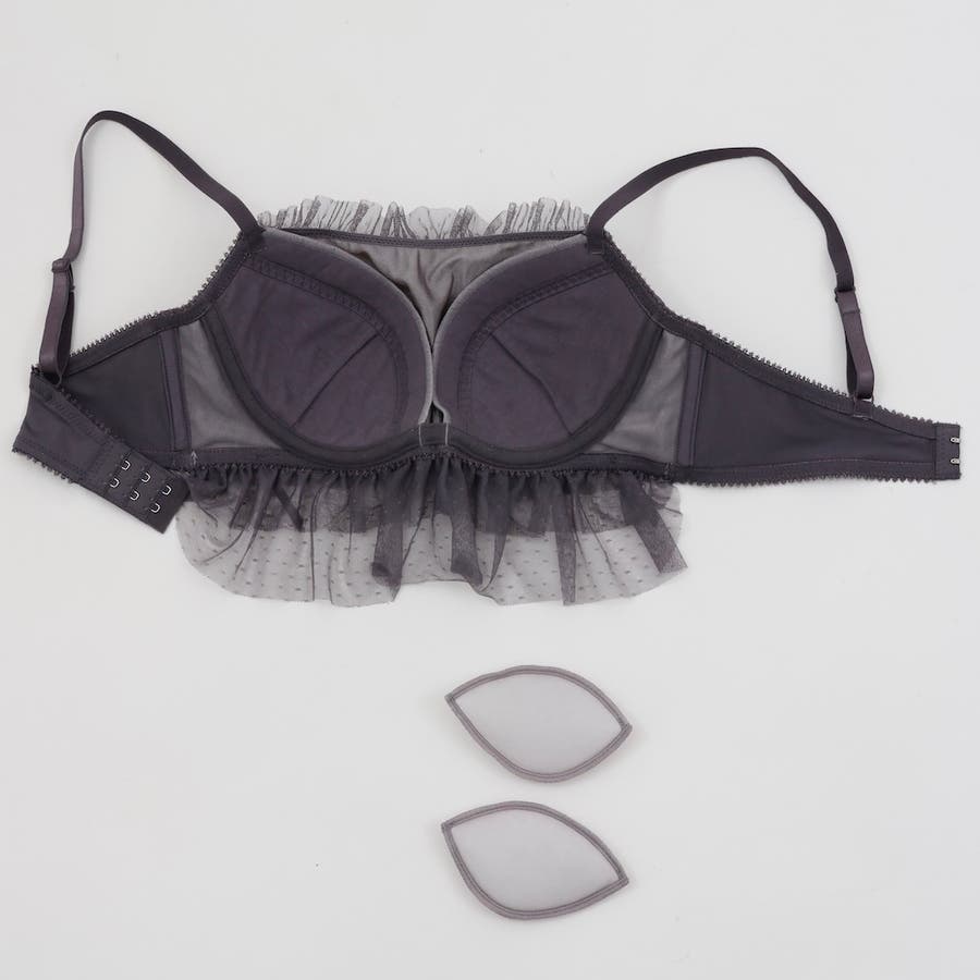 カップ全体をやさしく包むふんわりドットチュールでガーリーな雰囲気に!
