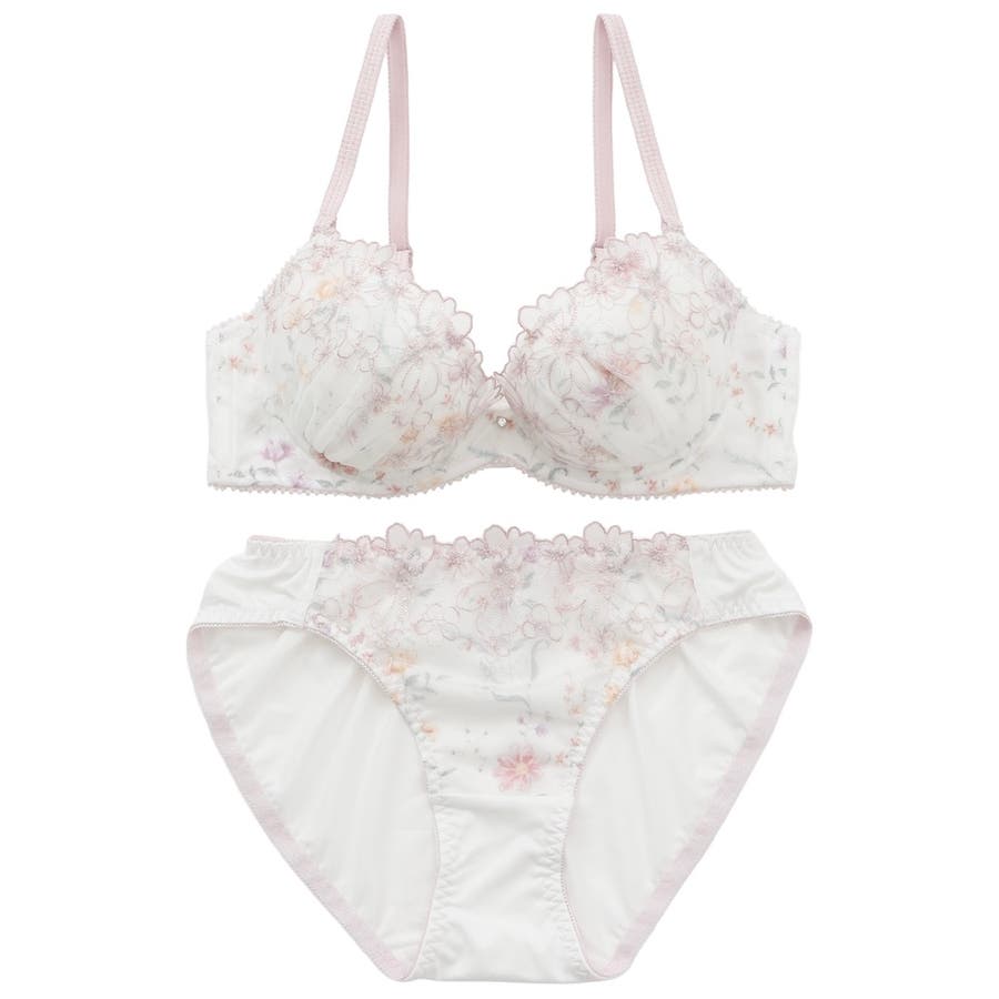甘すぎず上品な印象の大人かわいいデザインのブラとショーツの下着セットです。