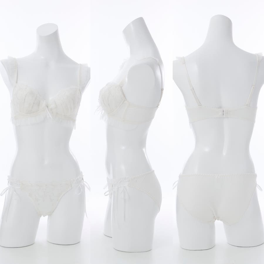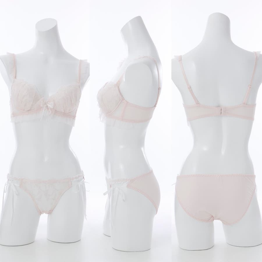ブラの中央には重ねたリボンをあしらい、ショーツのサイドには華奢なサテンリボンでアクセントをプラス。