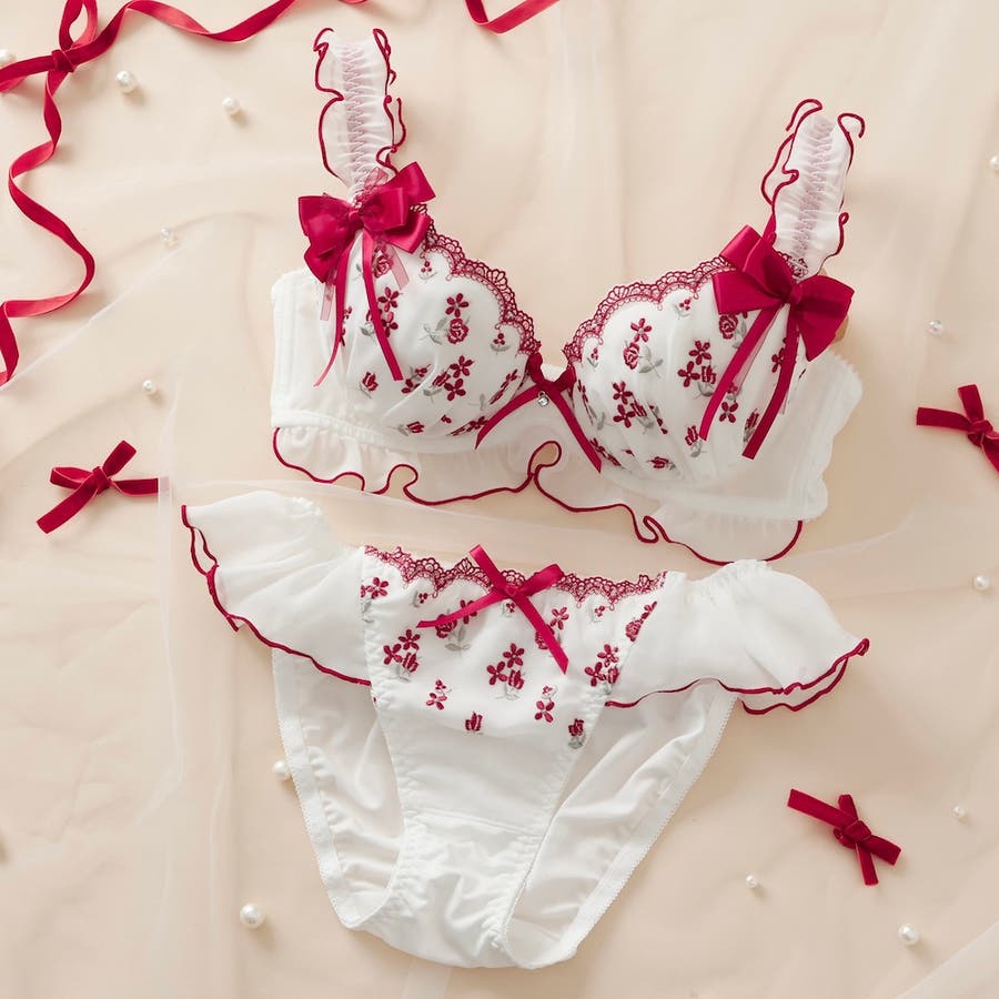 ふんわり揺れるフリルをブラのアンダーやショーツにあしらい、ガーリーな世界観をたっぷりと・・
