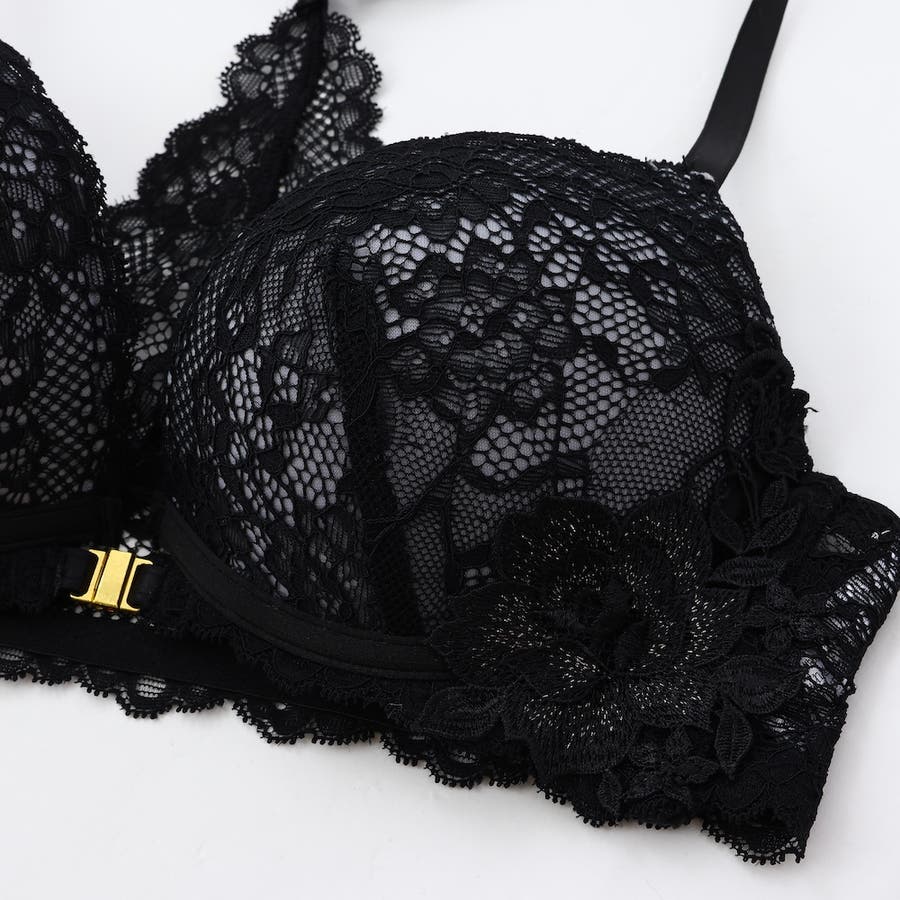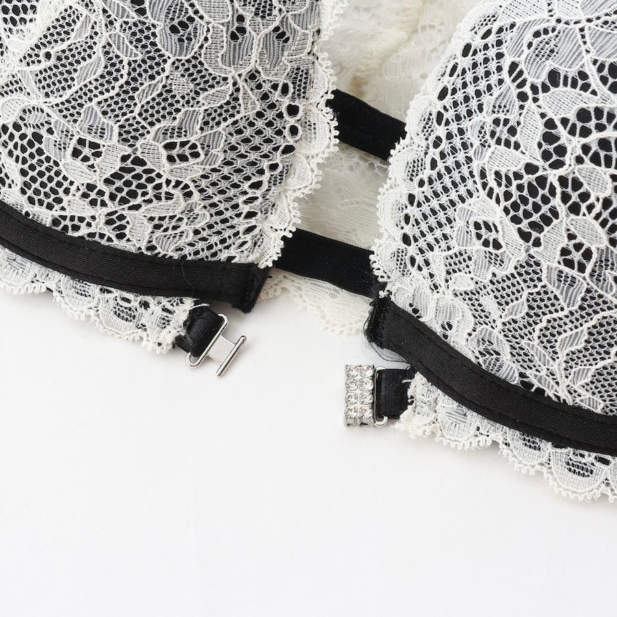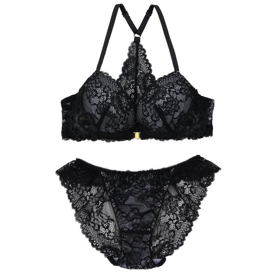 【脇高】フロントホック背中見せ3 4モールドカップブラ&バックレースショーツ B