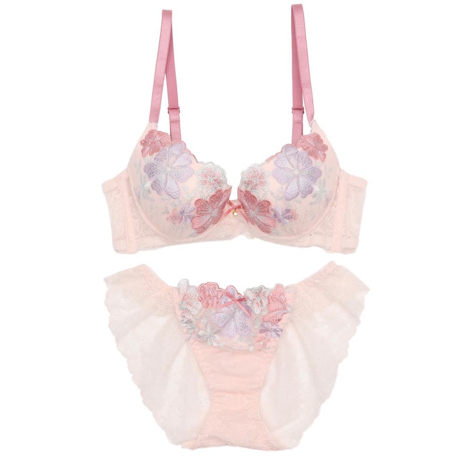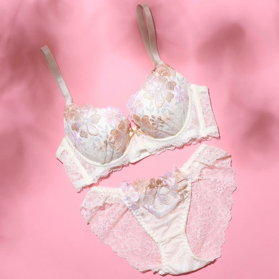 【脇高】 フェミニン大花刺繍3 4モールドカップブラ&バックレースショーツ