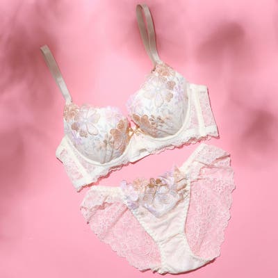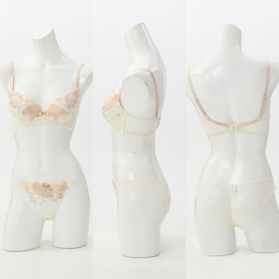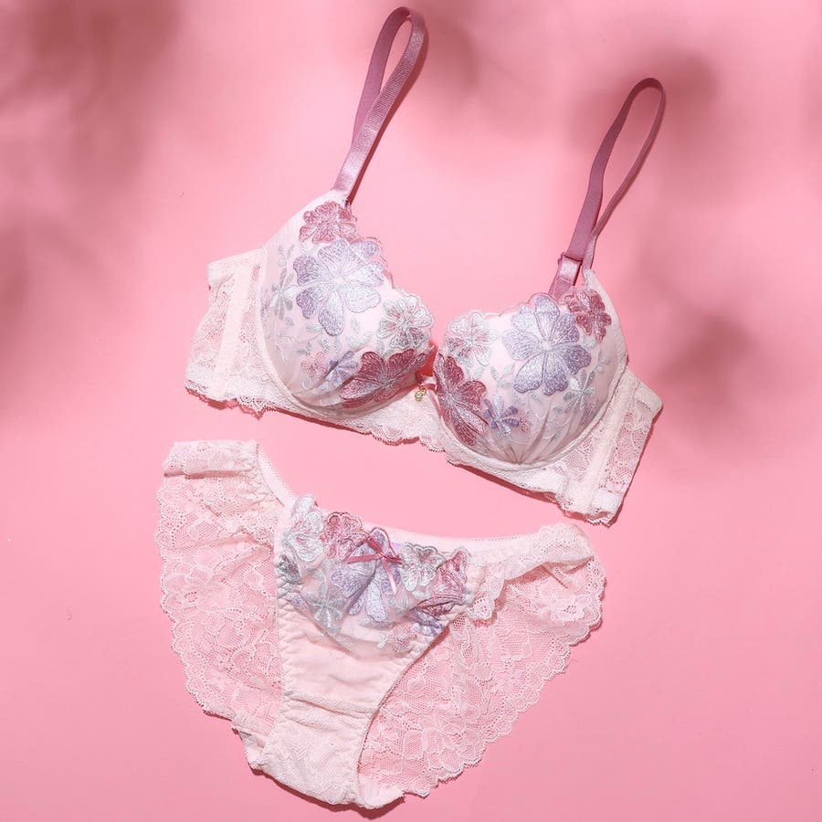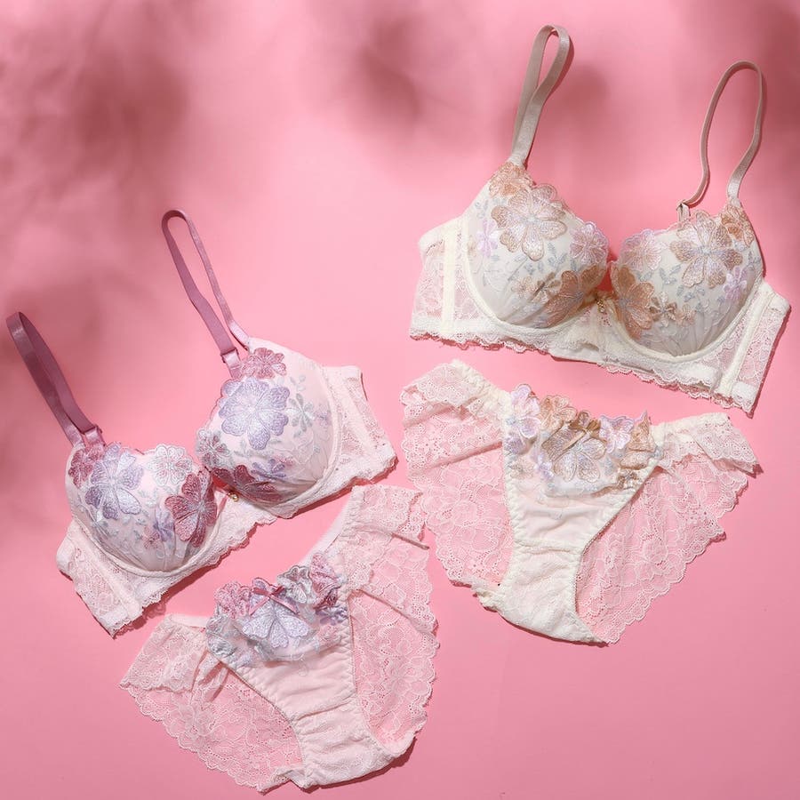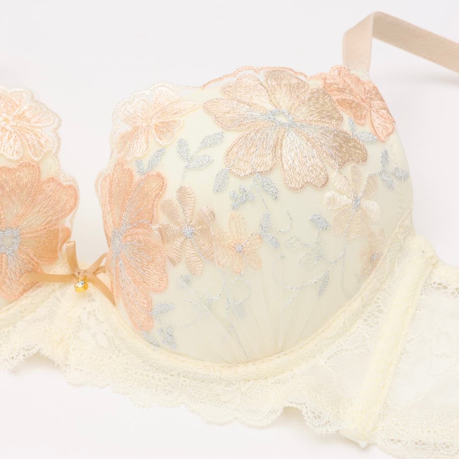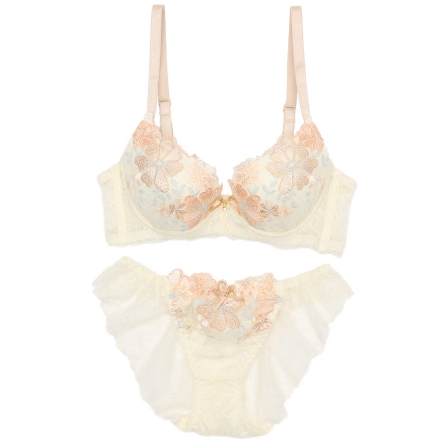 フェミニン大花刺繍3/4モールドカップブラ&バックレースショーツ EF