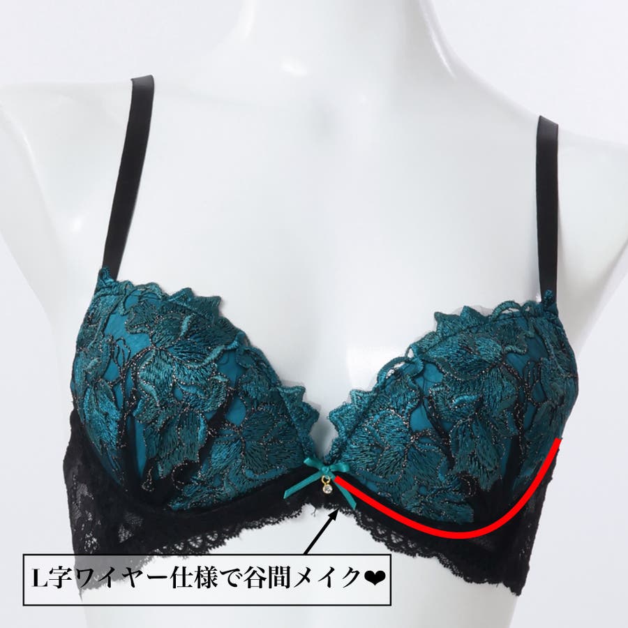 ■前中心の低いL字型ワイヤーは胸の中心にあたりにくく、きれいな谷間を作りやすい仕様です。