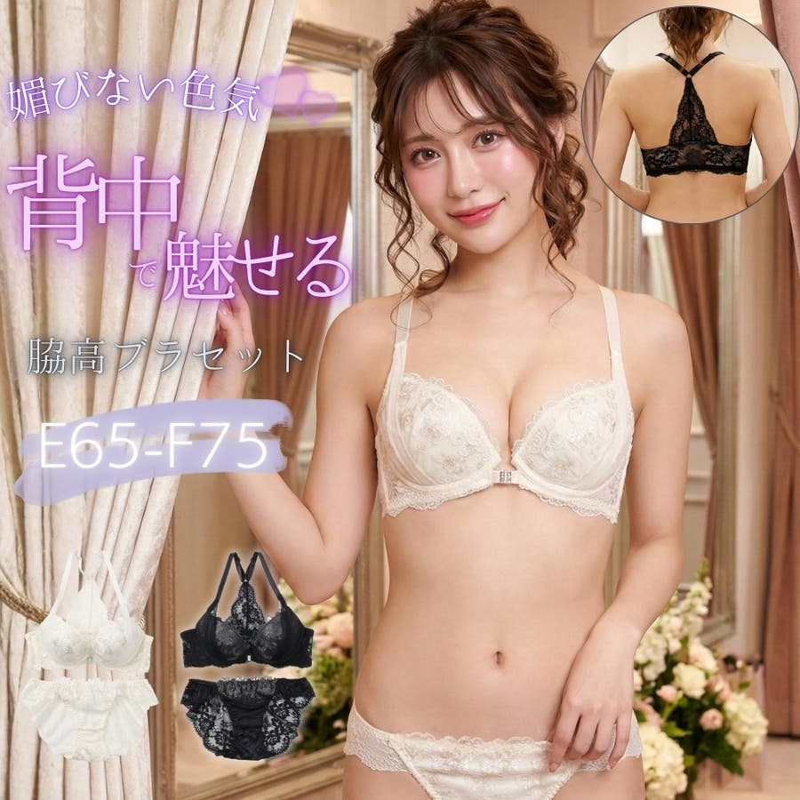【脇高】フロントホック背中見せ3 4モールドカップブラ&バックレースショーツ E