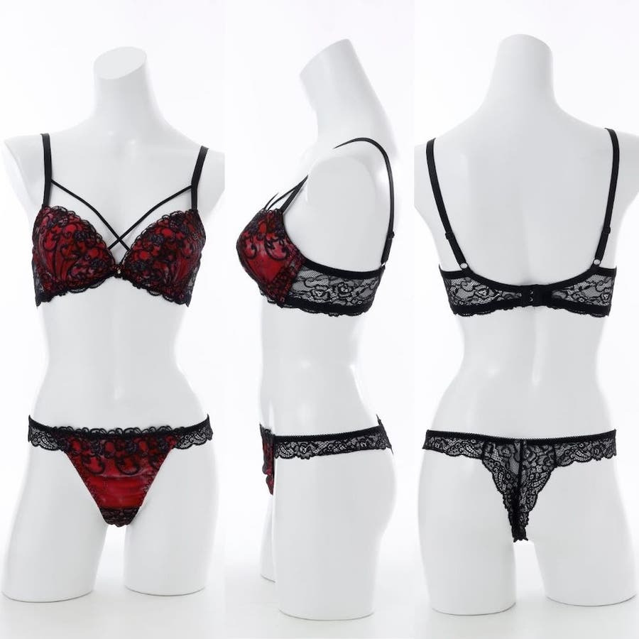 胸元のクロスコードでセクシーな印象のブラとTバックの下着セットです。