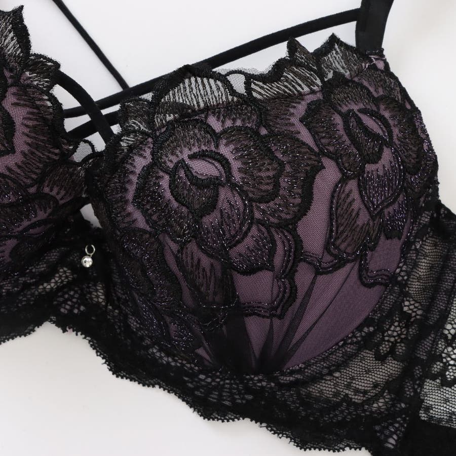 【脇高】ノワールローズ 脇高ブラ&バックレースひもショーツ A B C D