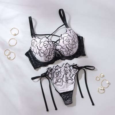 【脇高】ノワールローズ 脇高ブラ&Tバックひもショーツ A B C D