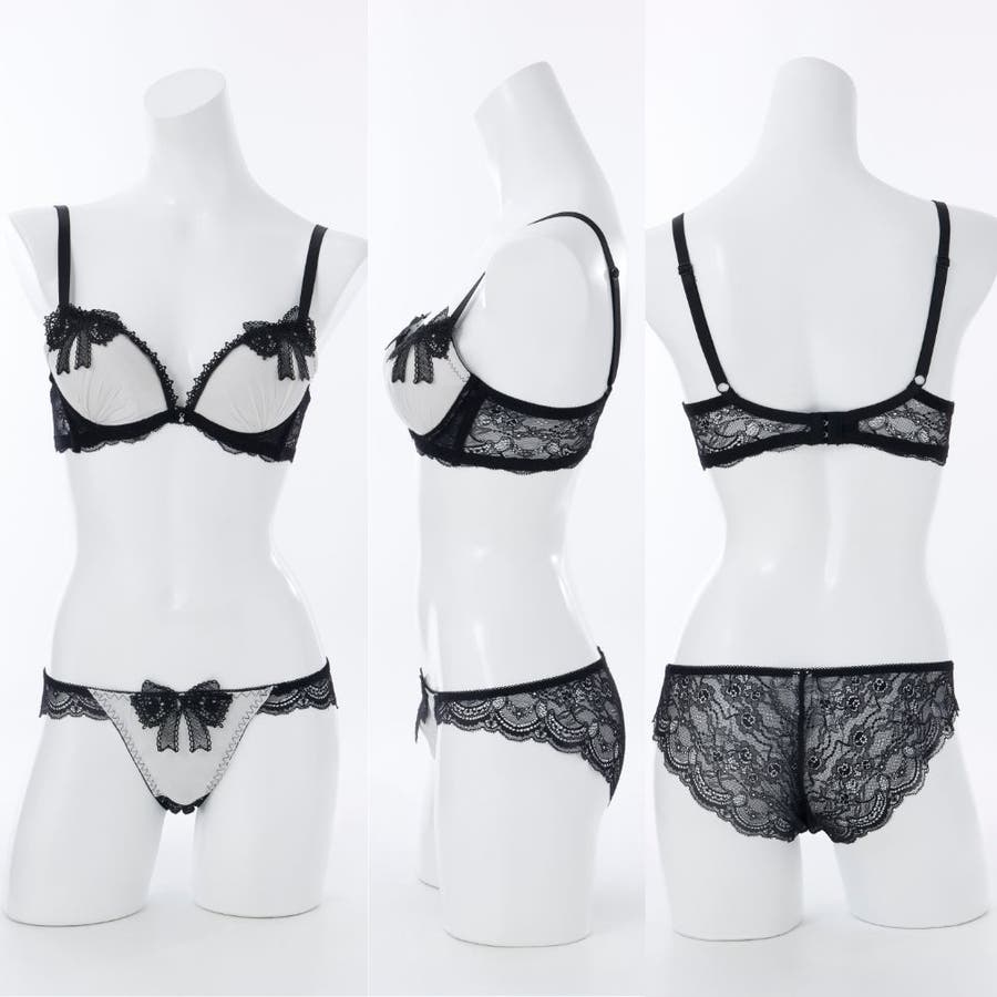 【脇高】 ノーブルリボン 脇高ブラ&バックレースショーツ E F