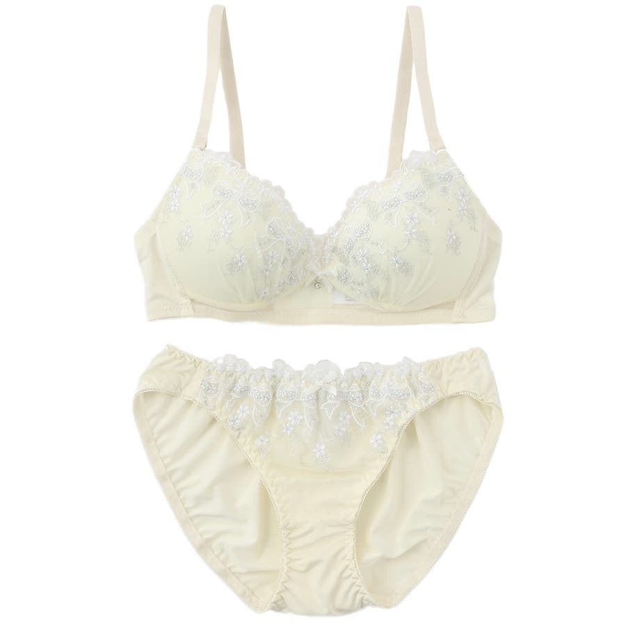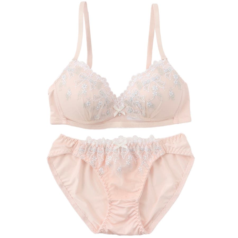 【ノンワイヤー】プリンセスリボン刺繍 ノンワイヤーブラ&ショーツ